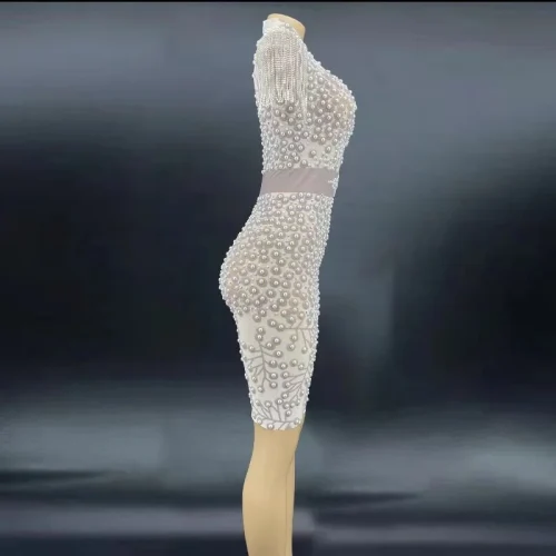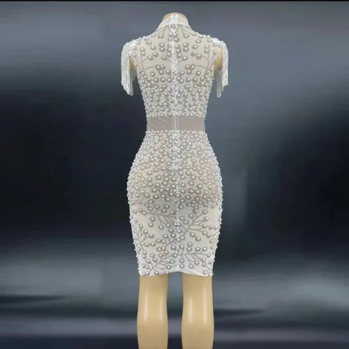 Product Name: NOVANCE Y2240-D High Quality Apparel Stock Elegant Pearl Fringed Shoulder Mother of the Bride Dresses Celebrity Dress Sleeveless