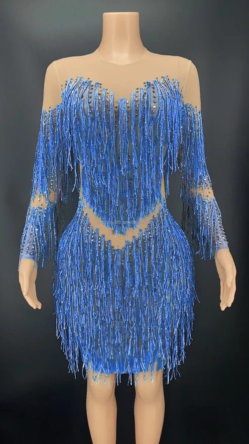 Product Name: Novance Y2341 Women Outfit Cute Sparking Diamonds Tassels Orange Skirt Slim Mini Dress for Prom Party