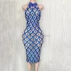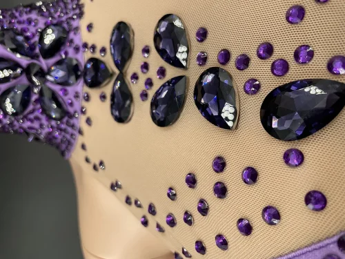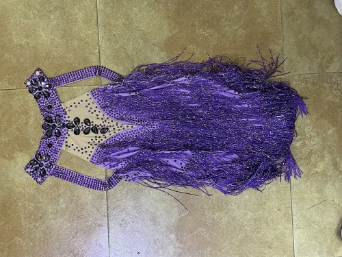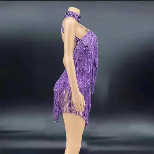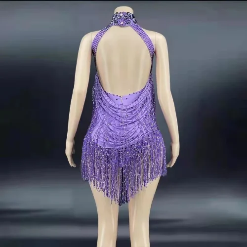 Product Name: NOVANCE Y2351 2022 Spring Women Clothing Diamond Rhinestone Fringe Trim Costumes Purple Turtleneck Sleeveless Backless Dress