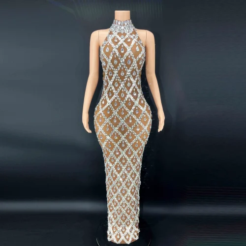 NOVANCE Y2360-B New Fashion Long Dress Women Partying Diamond Crystal Halter Slit Dress Show Vestidos De Fiesta Largos Elegantes