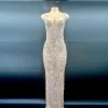Product Name: NOVANCE Y2369-B Prom Dresses 2022 Rhinestone White Wedding Gown Women Slim Two Piece Outfits Mermaid Feather Wedding Gown