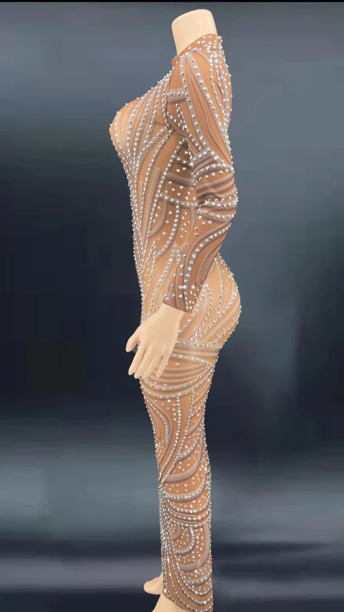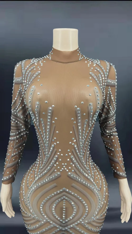 Product Name: NOVANCE Y2413 Spring Clothings for Women Diamond Long Sleeve Back Split Translucent Ladies Clothing Sexy Costume Women