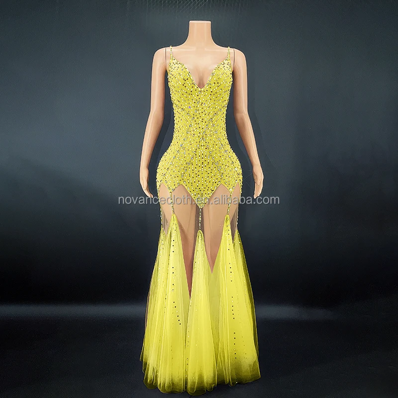 Product Name: NOVANCE Y2627 Fall Clothing Blingbling Elegent Yellow Suspender Evening Bowl Gowns Dress Women Party Dresses for Evening Party