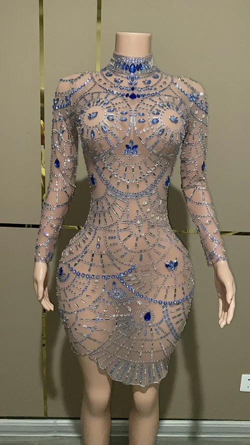 Product Name: Novance Y3510 Evening Dresses 2023 Long Sleeve Sexy Rhinestone Women Party Clothes Mesh Luxurious Casual Clothes for Women