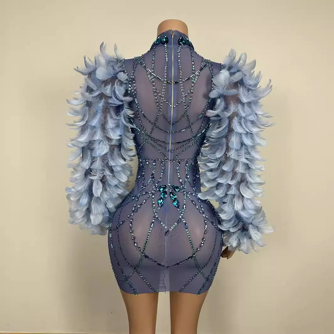 Novance Y3743 Womens Clothing Feathers Long Sleeve Cocktail Dresses Short Party Dresses Women Evening Elegance
