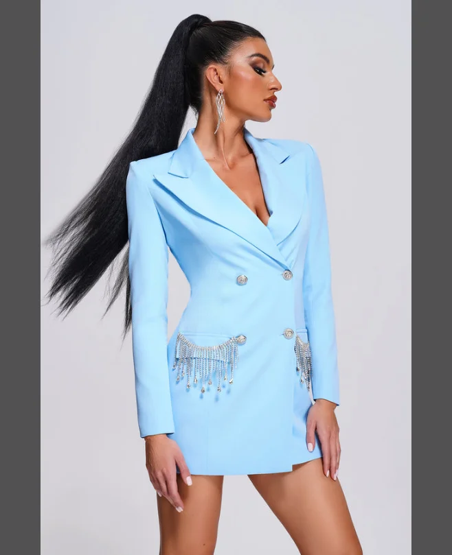 Product Name: Ocstrade Fall Clothes 2023 Blue Professional Blazer Dress Women Career Luxury Office Career Dresses Elegant Formal