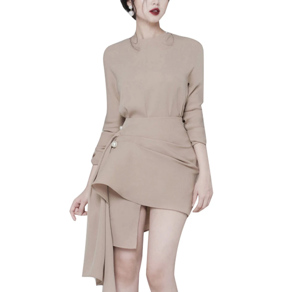 Product Name: Office Work Wear Sets Skirt Long Sleeve Two Piece Style Irregular Body-con Dress