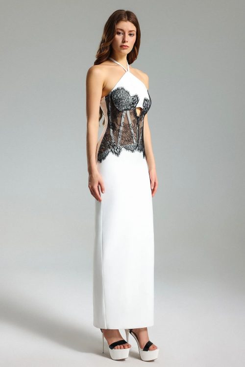 Ogani Lace Mesh Halter Dress