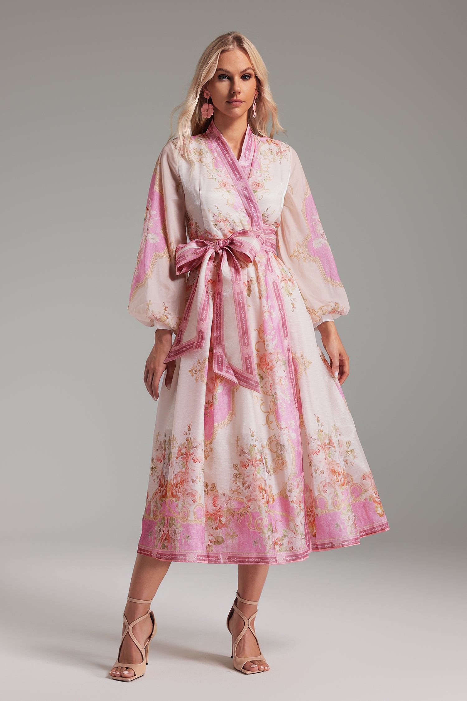 Oiala Long Sleeves Printed Midi Dress