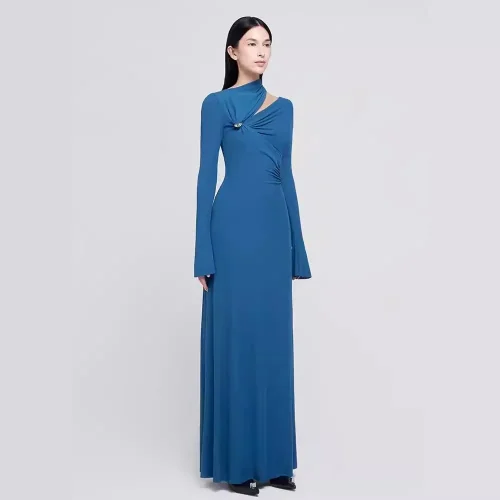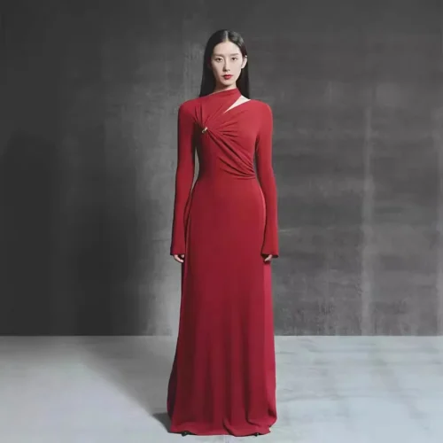 Product Name: Old Money Clothing Women Dresses Women Lady Elegant Party Dresses Twist Detail and Cut-out Neckline Elegant Long-Sleeved Gown