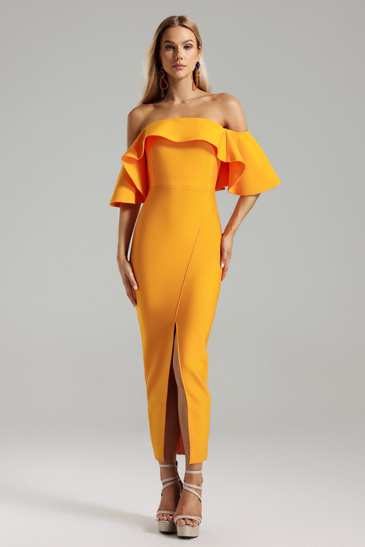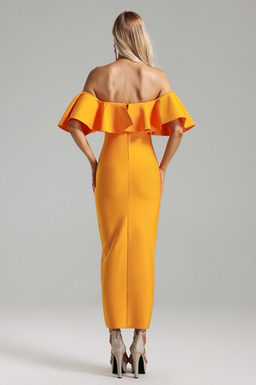Omi Ruffled One Shoulder Slit Maxi Dress