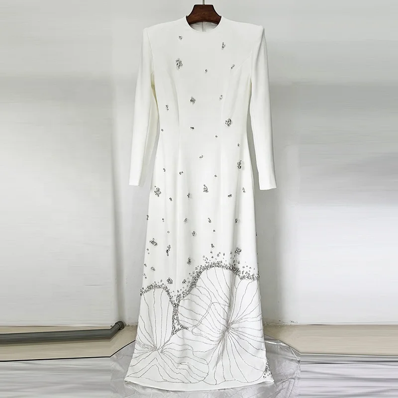 Product Name: OUDINA Luxury Rhinestone Casual Beaded Diamond Maxi Long Dress Elegance Party Evening Dresses for Women