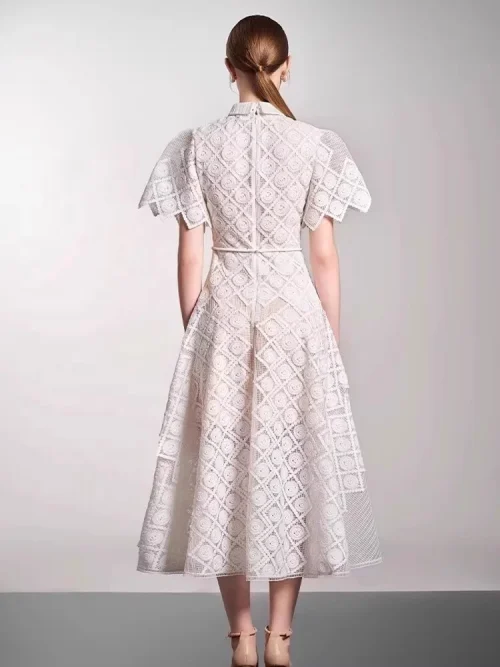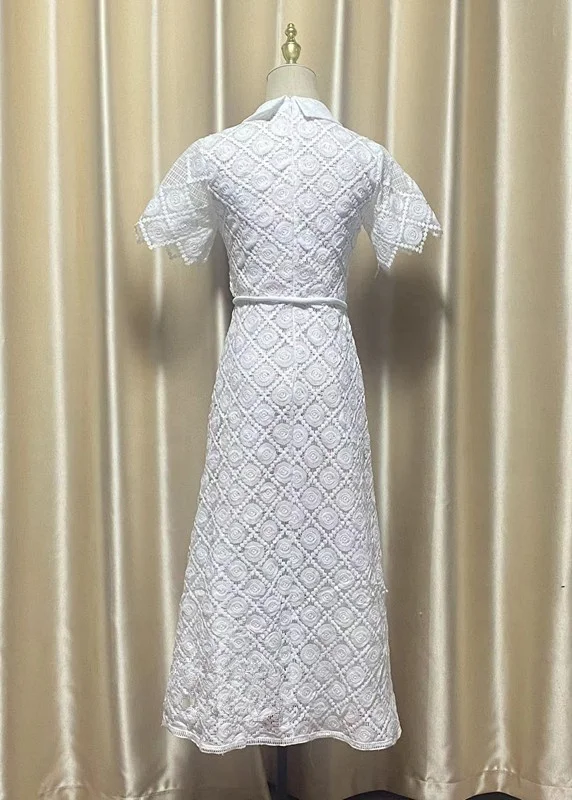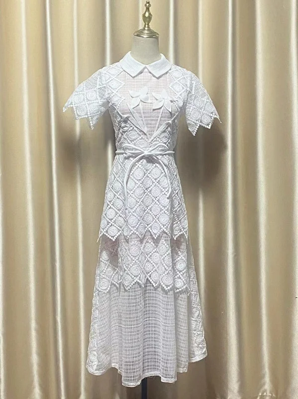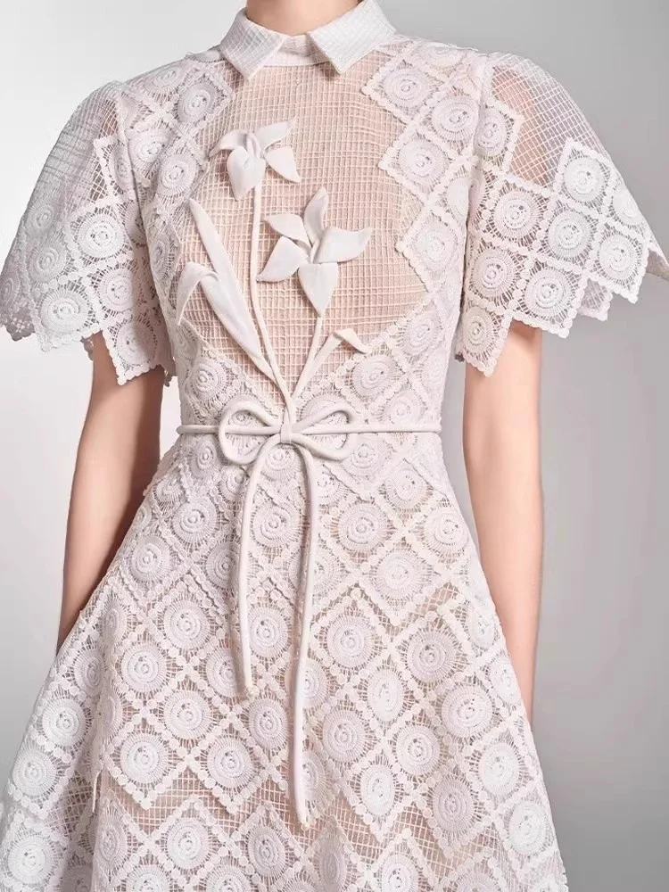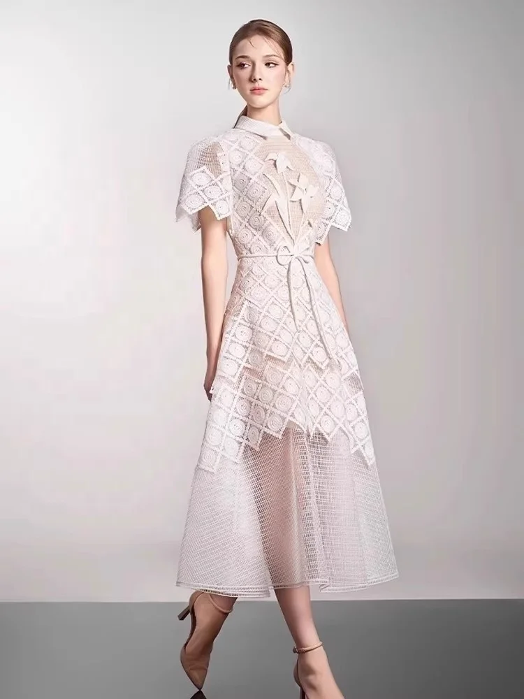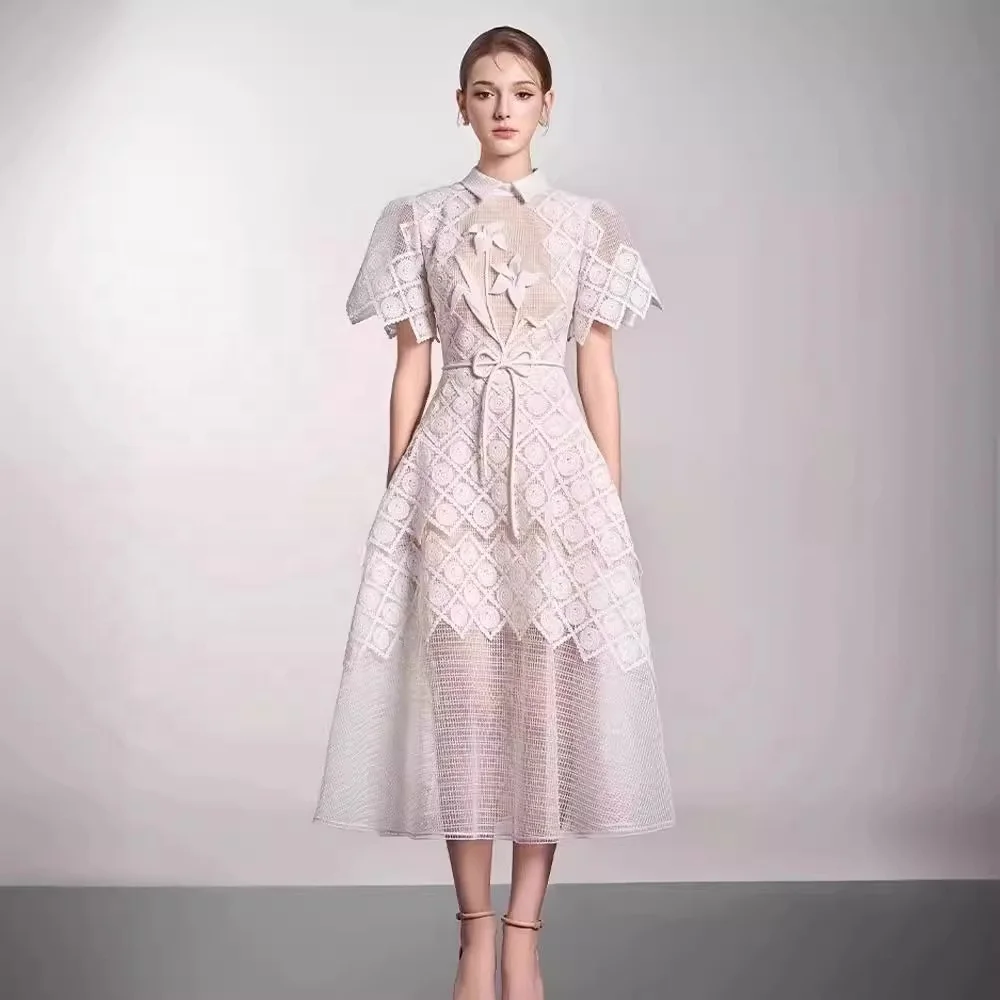Product Name: OUDINA New Arrivals Casual Lapel Three-Dimensional Flower Diamond Mesh Long Party Dress Women Elegant Dresses