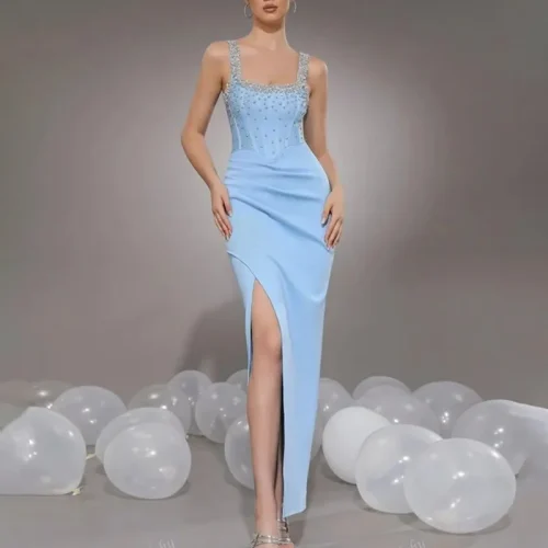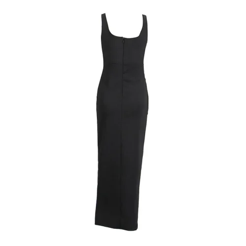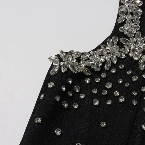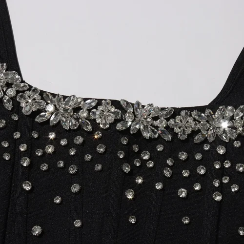 Product Name: OUDINA Summer New Temperament Black Long Diamond Slim Bandage Suspender Elegantes Evenings Dresses Evening Dress
