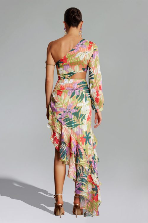 Parry Flower Print One Shoulder Cut Out Asymmetrical Dress – Floral