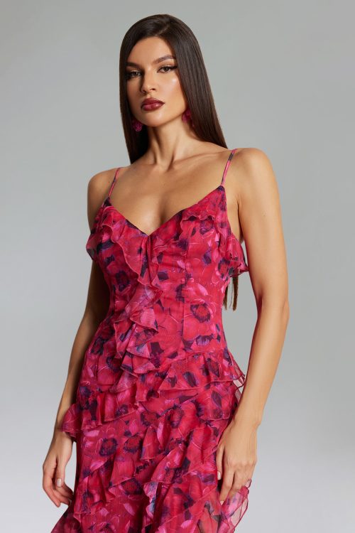 Pedra Flower Print Ruffled Maxi Dress – Pink