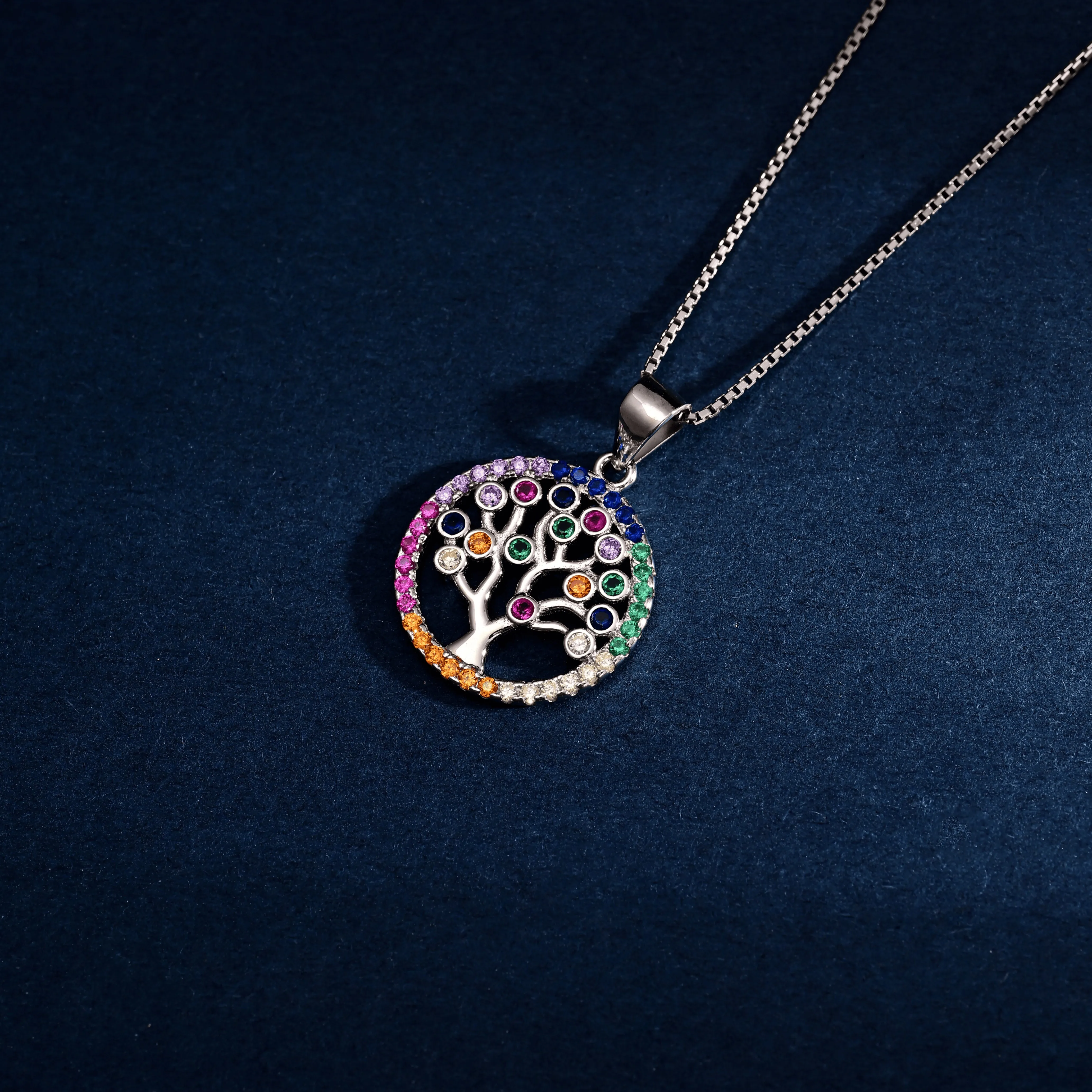 Product Name: Pendant Jewelry Rhodium Plated Cubic Zirconia Tree of Life Retro Pendant 925 Sterling Silver Fine Jewelry Pendant