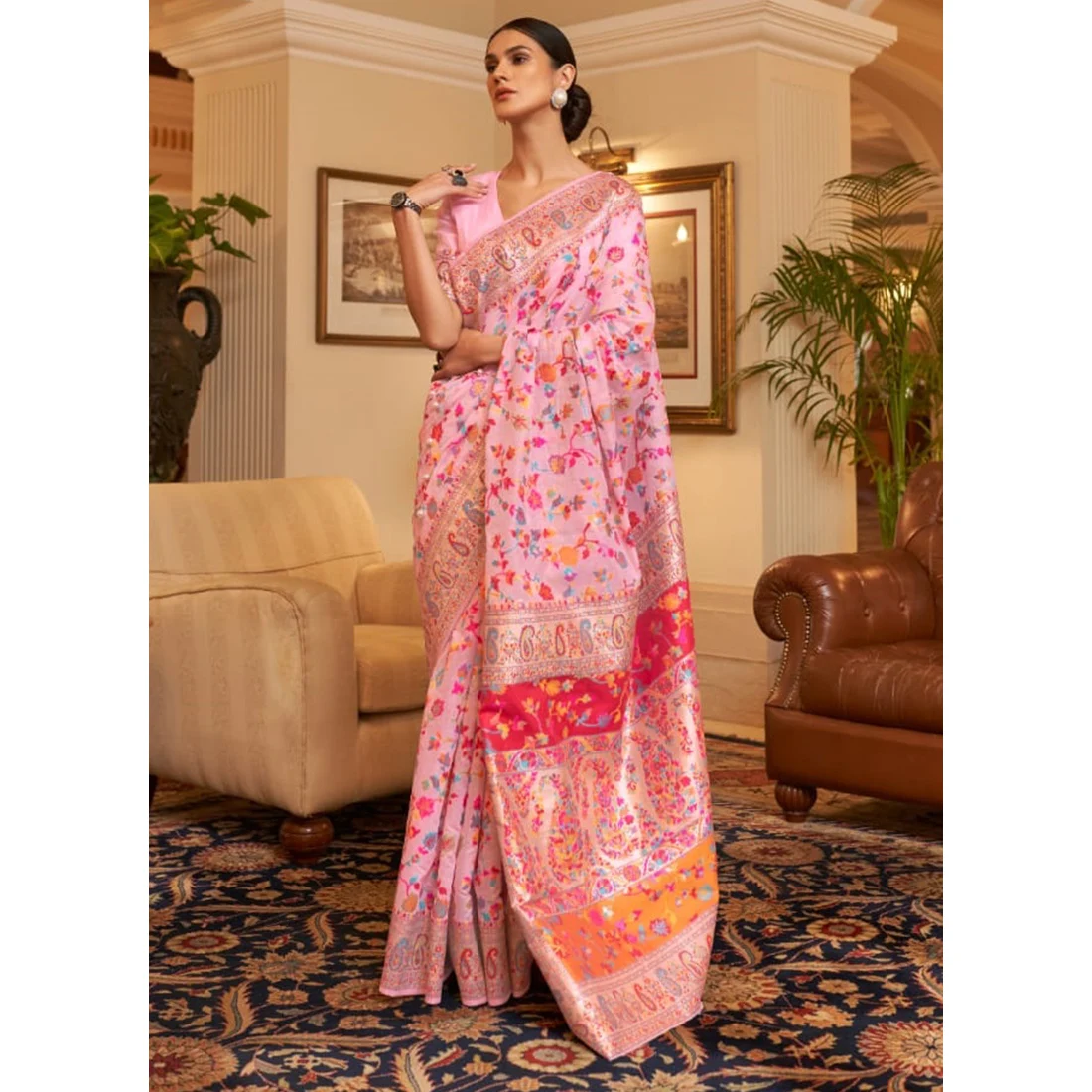Pink Weaving Work Silk Saree Elegant Career Dress