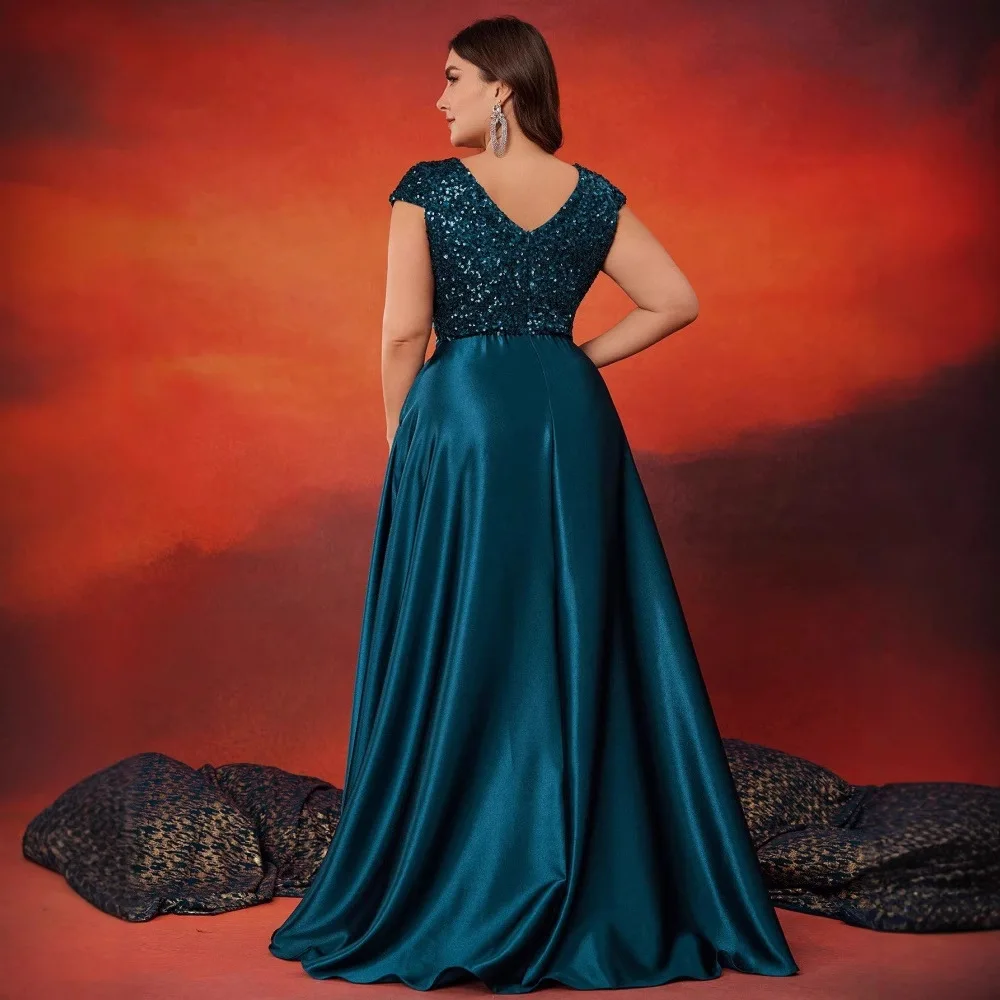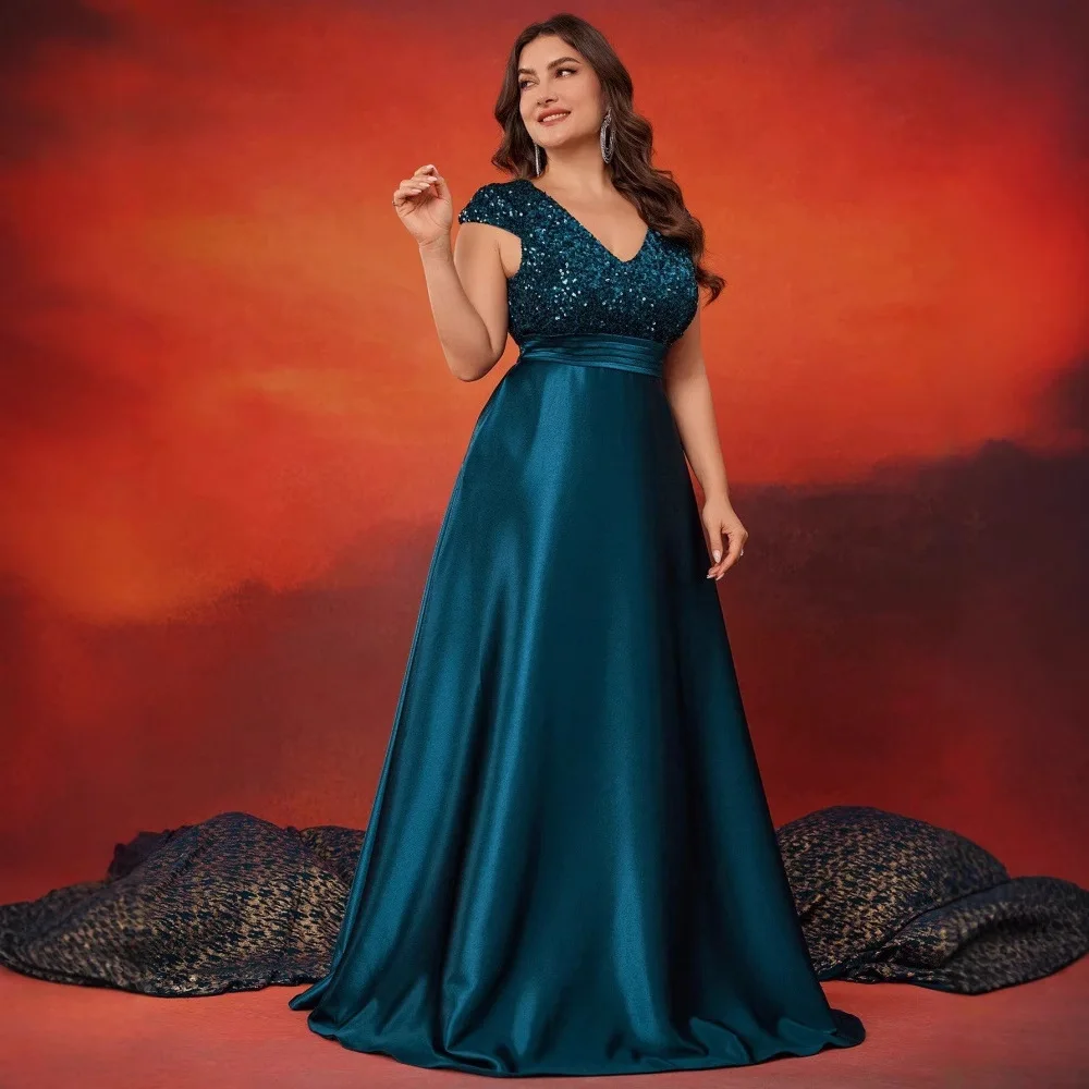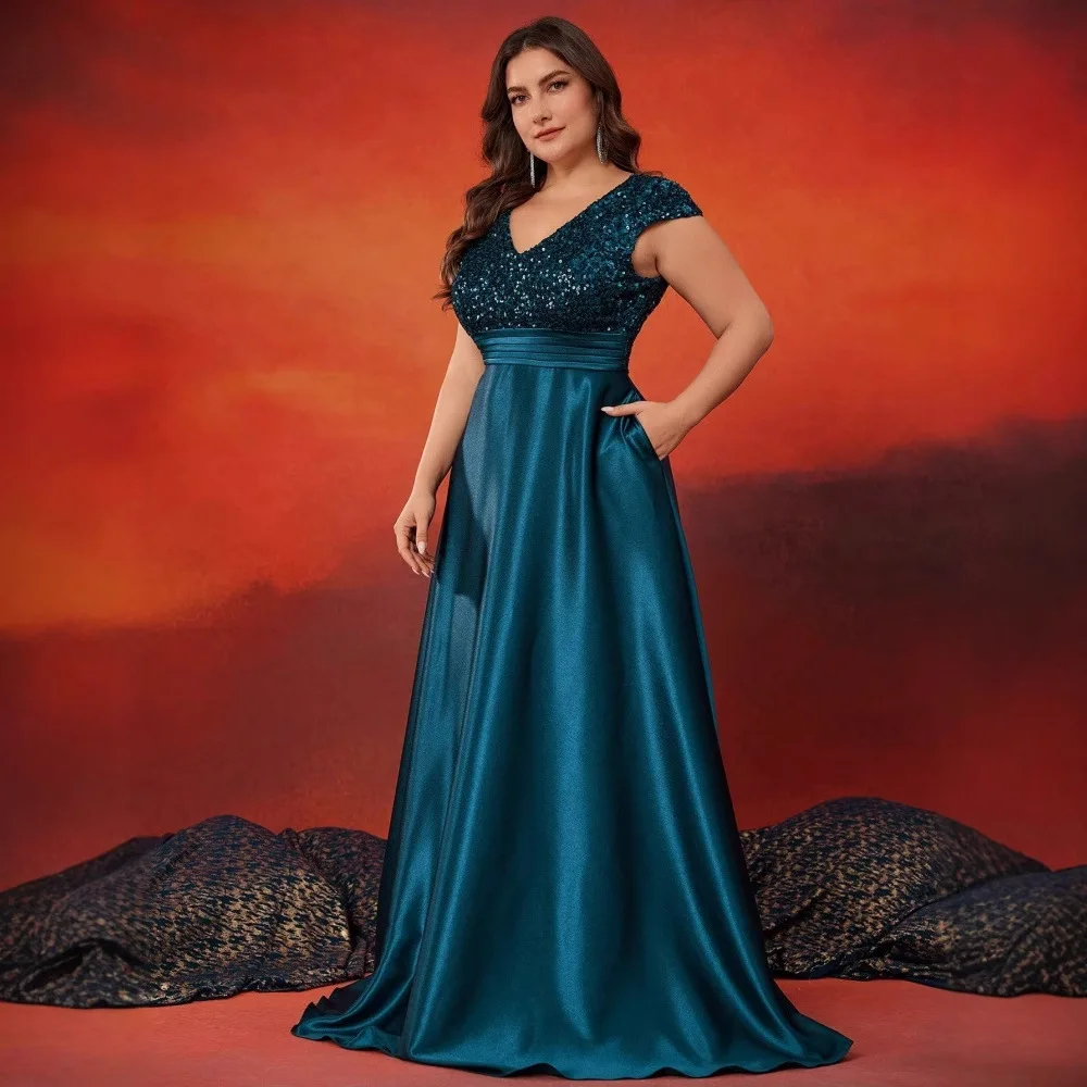 Plus Size Women’s Elegant Satin Evening Party Dress New Sequined V-Neck Sleeveless Long Skirt for Summer