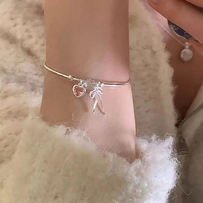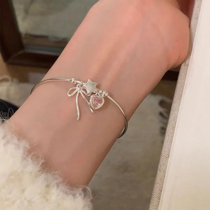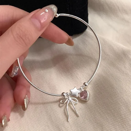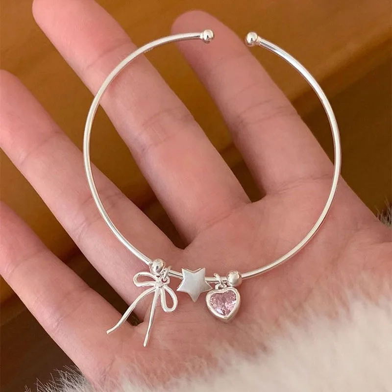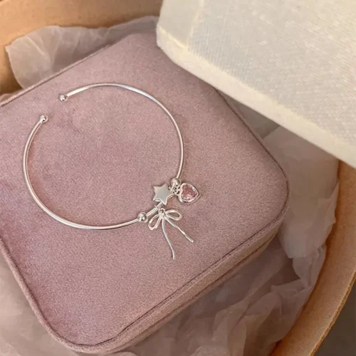 Product Name: Popular Jewelry 925 Sterling Silver Luxury Pink Zircon Heart Bowknot Star Shaped Charms Bracelet & Bangle for Women