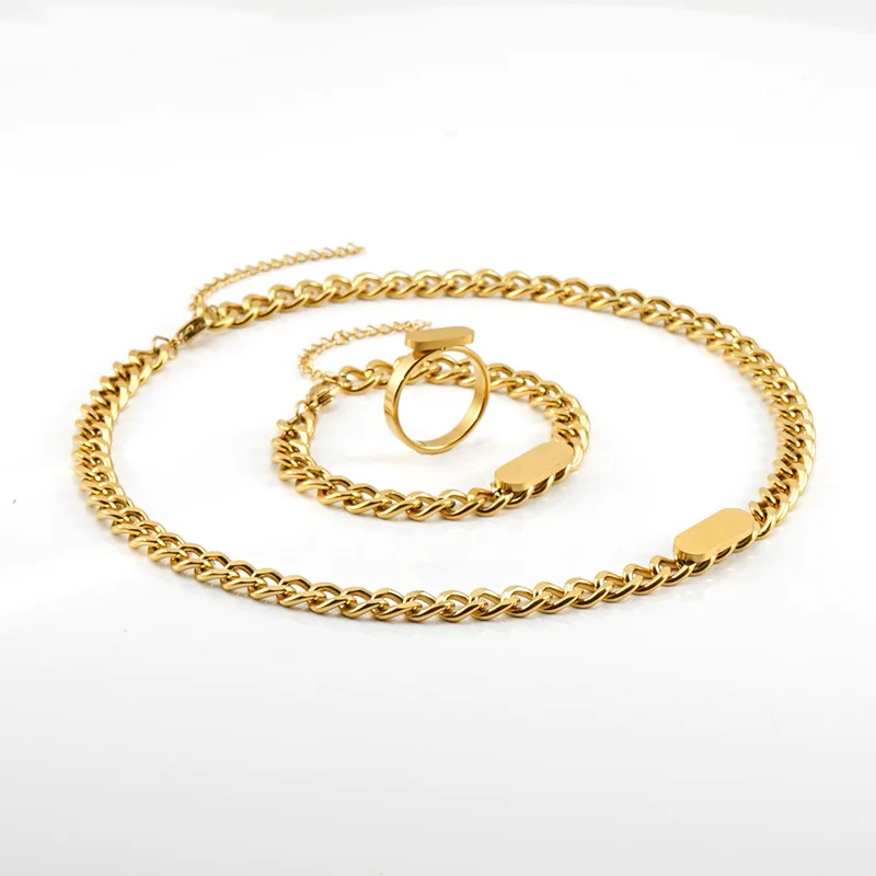 Product Name: Popular Stainless Steel Cuban Chain Plated 18k Jewelry Set Women Fashion Earrings Ring Necklace Bracelet Set