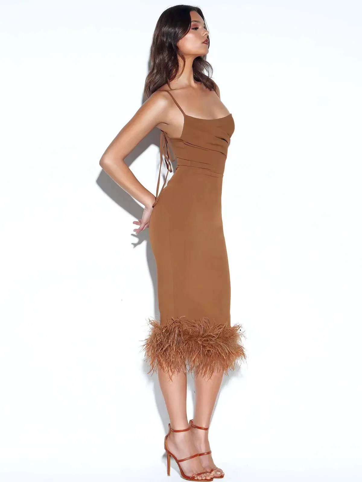 Product Name: Popular Women’s Elegant Dresses, Fashionable Feather Skirts, Tight Hip Wrapping Sundresses
