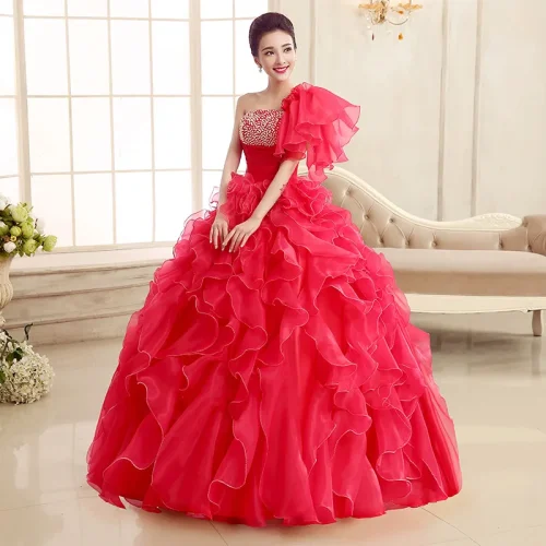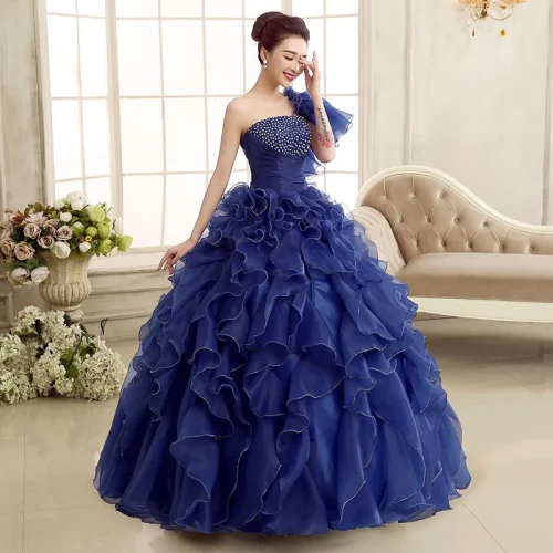 Purple One Shoulder 3d Flower Quinceanera Puffy Dresses Party Princess Organza Birthday Ball Gown Prom Dresses