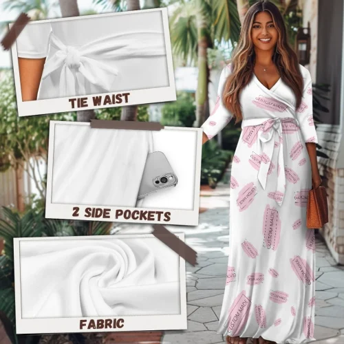 Quality Made Plus Size V-neck Dress Women’s Long Career Dresses With Belt