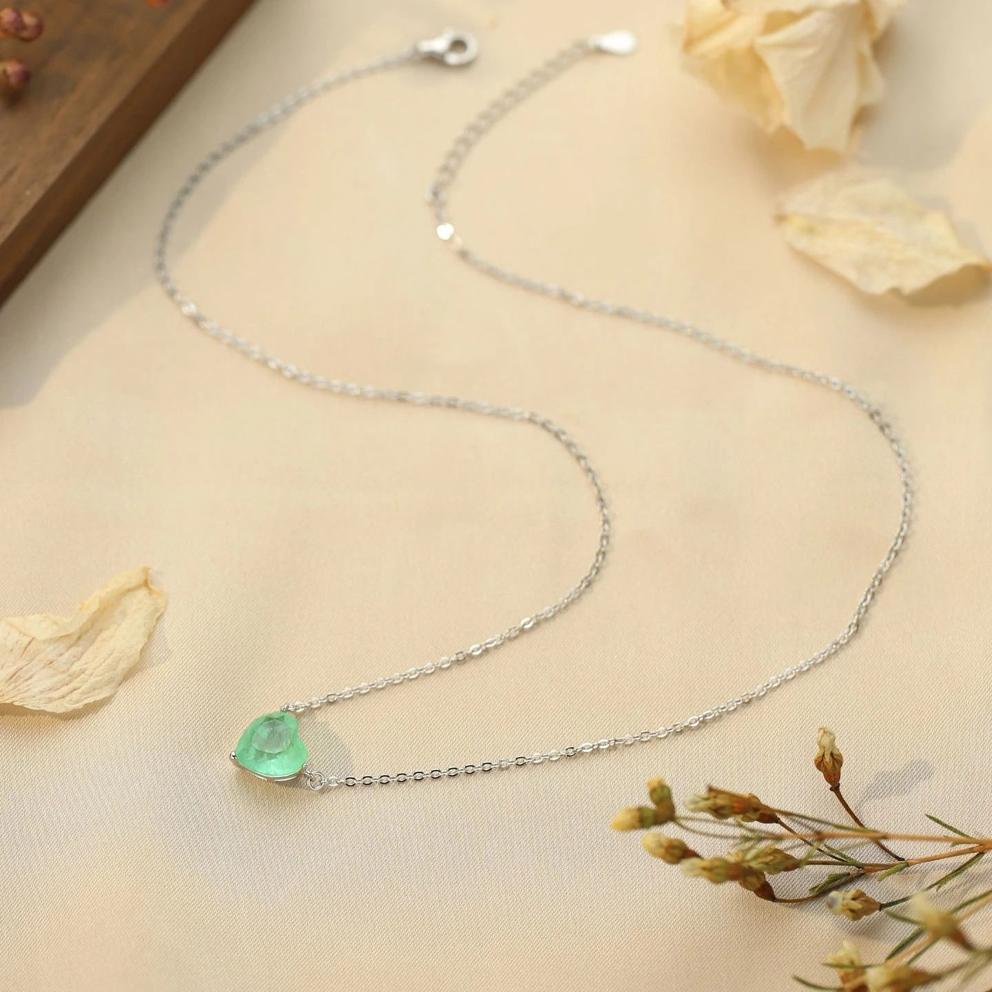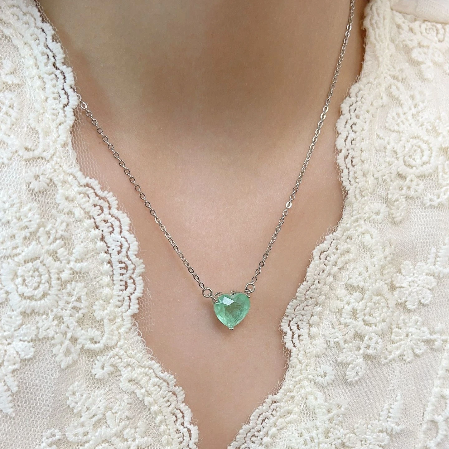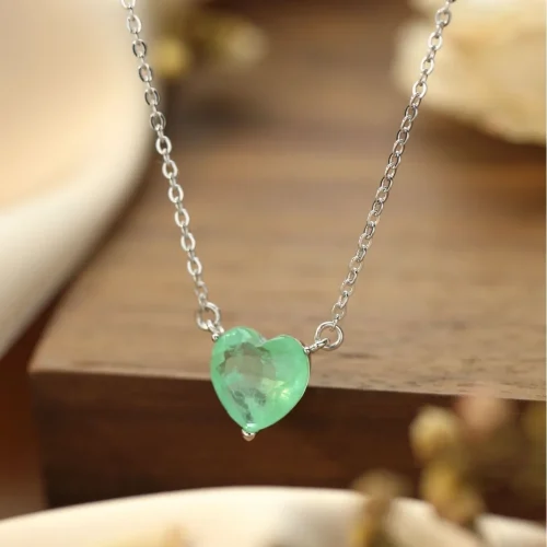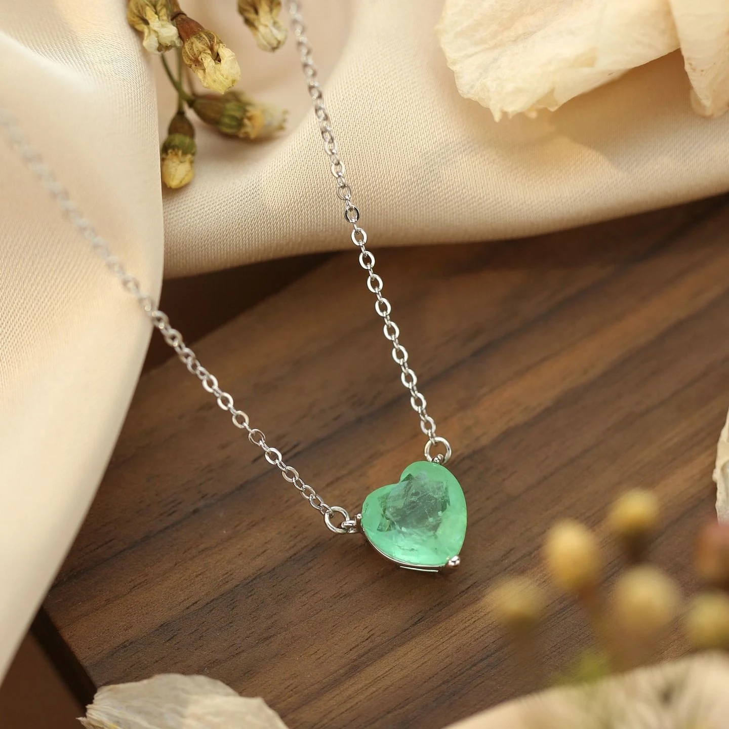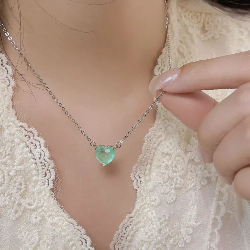 Product Name: r Sky Blue Love Heart Stone Necklace S925 Sterling Silver Zirconia Blue Paraiba Heart Pendant Stone Fine Jewelry