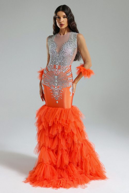 Rae Diamante Mesh Fishtail Maxi Dress