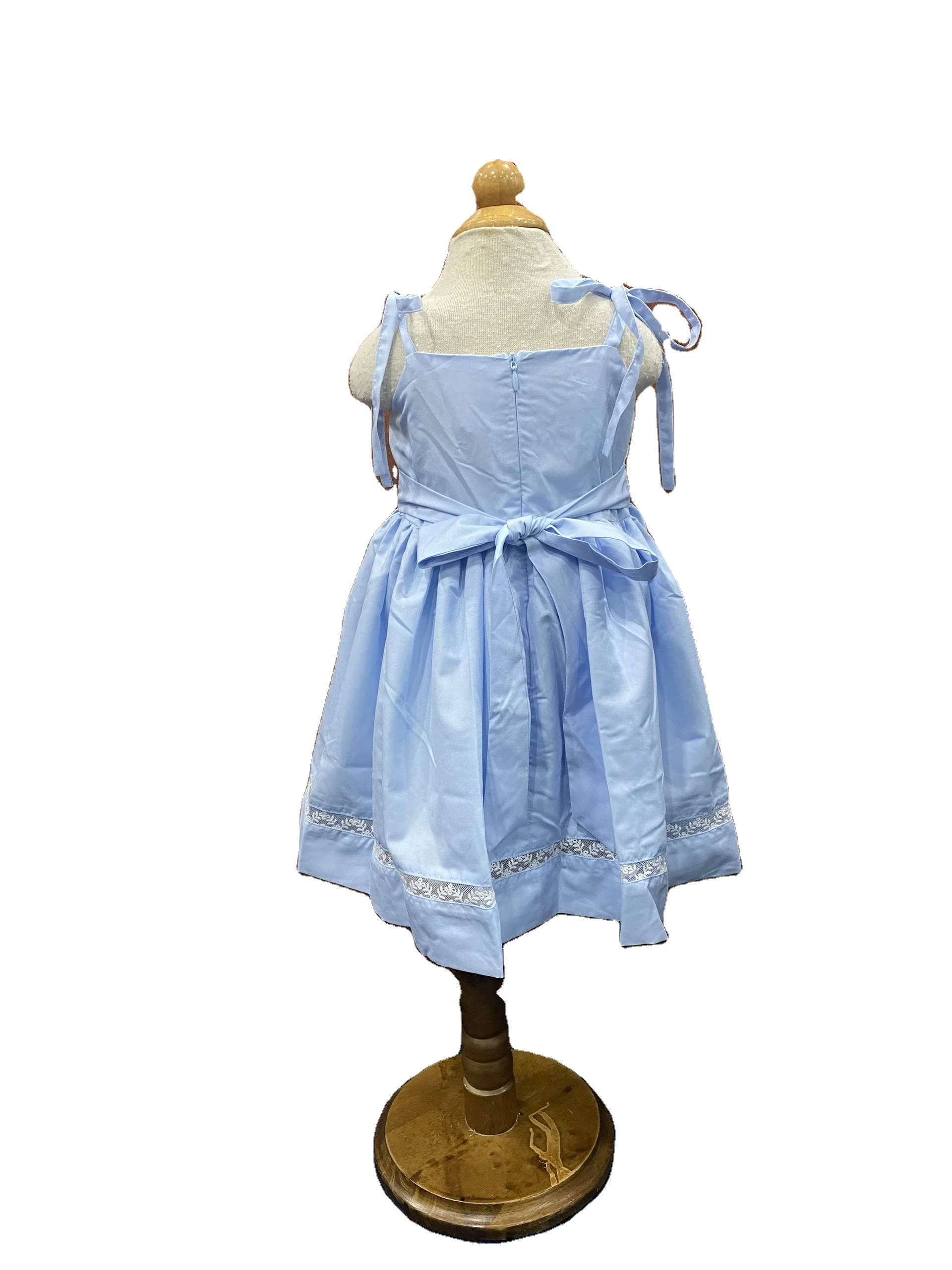 Product Name: Ready Ship Cute Sleeveless Blue Dress 6-Year-Old Baby Girl Khate Fabric Machine Embroidery Lace Connect Mini Parties Included
