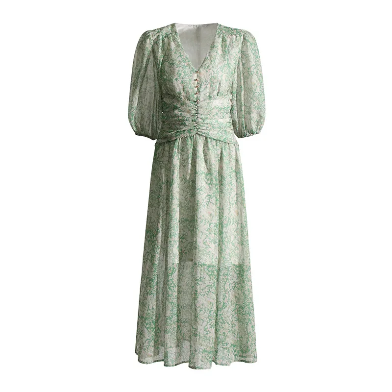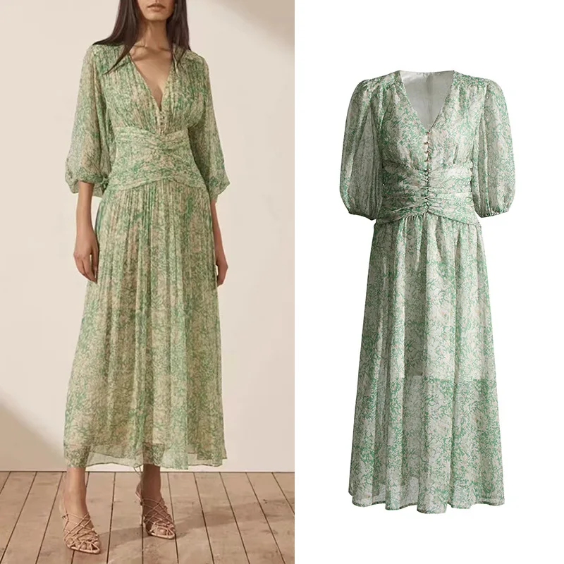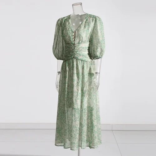 Ruched Frill Maxi Dress Novel Lady Elegent Casual Dresses Elegant Formal Summer Female Dresses Women 2024