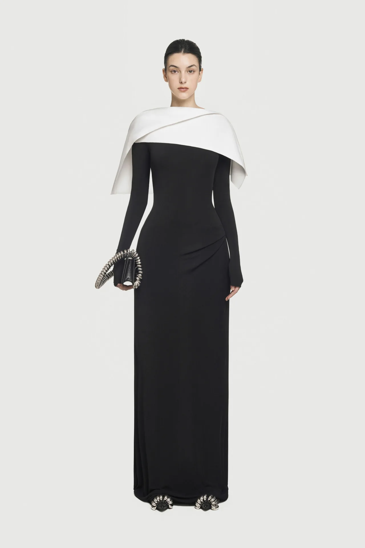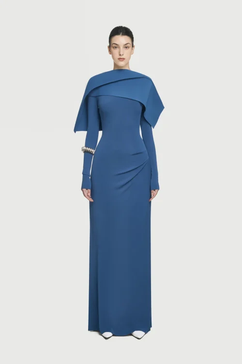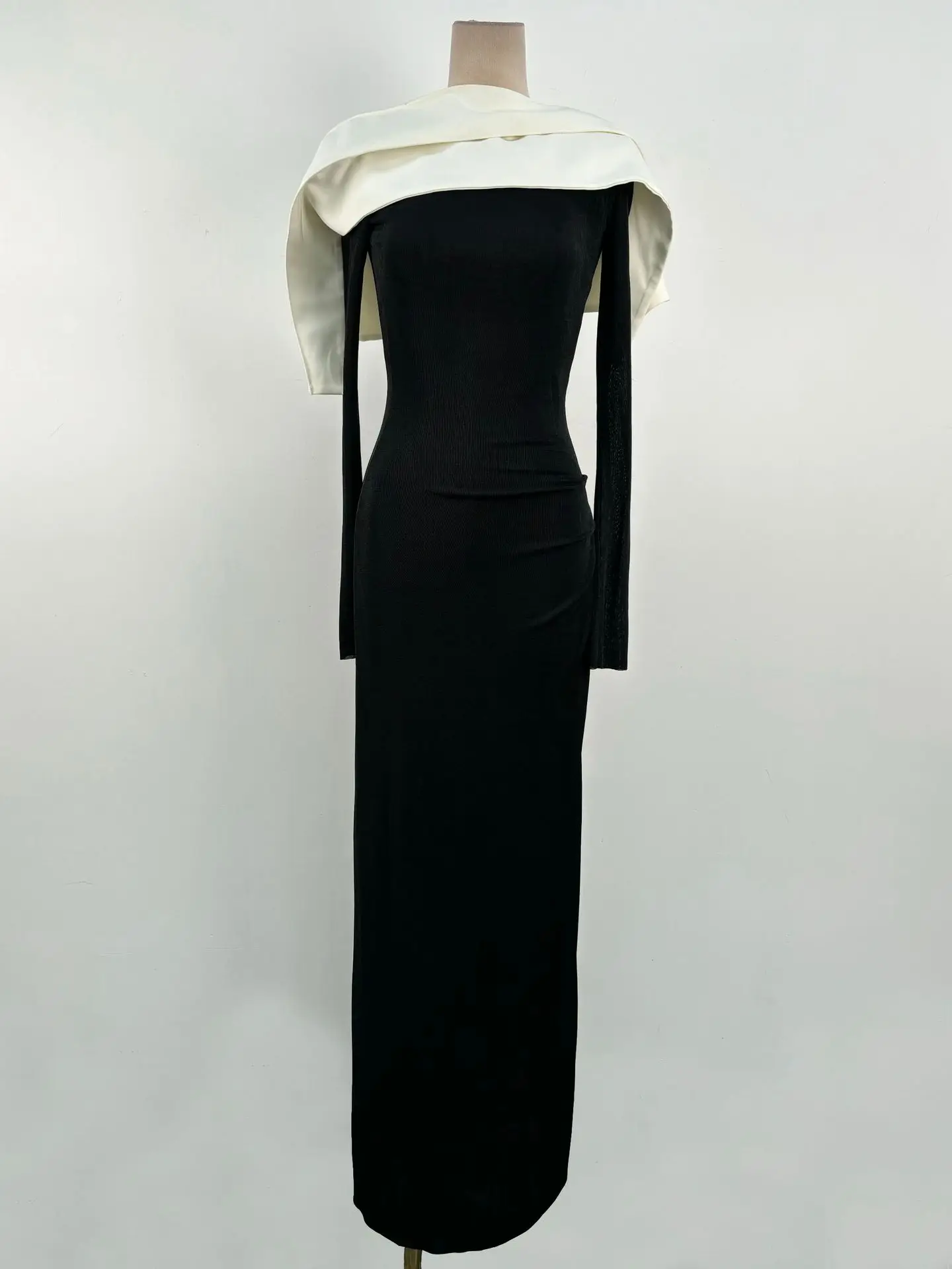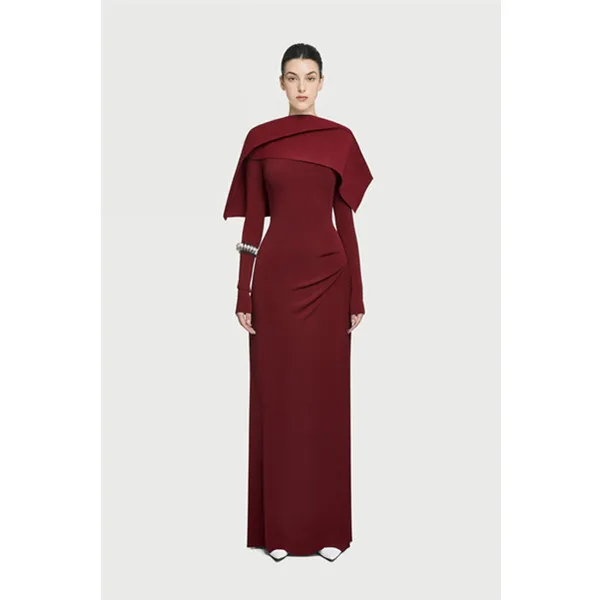Ruffled shawl-style ladies dress new arrival elegant simple high quality dress fitted and stylish party dress