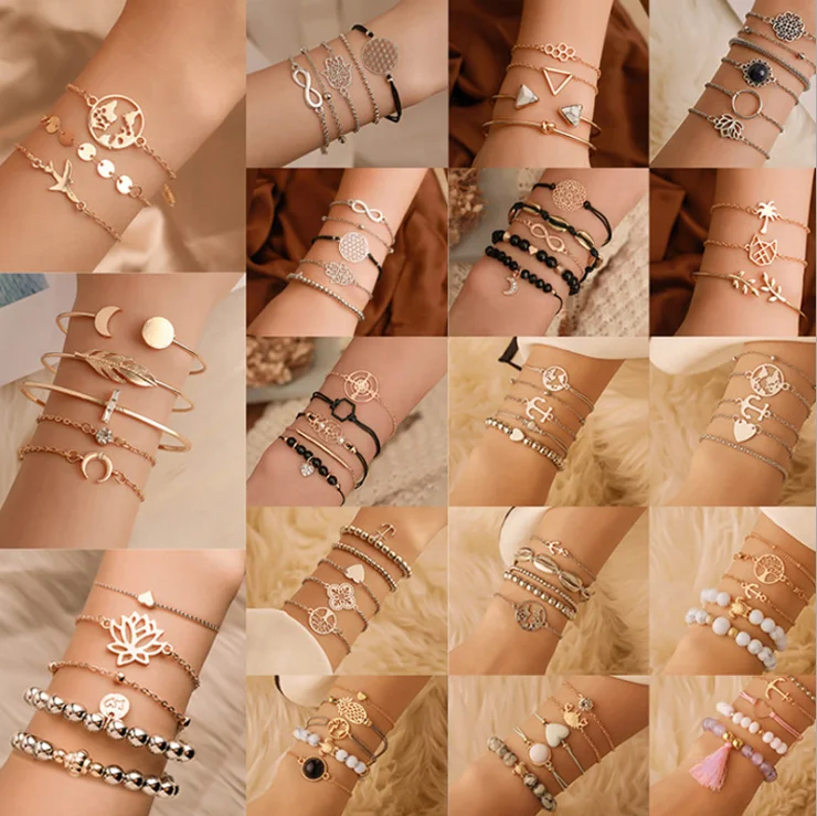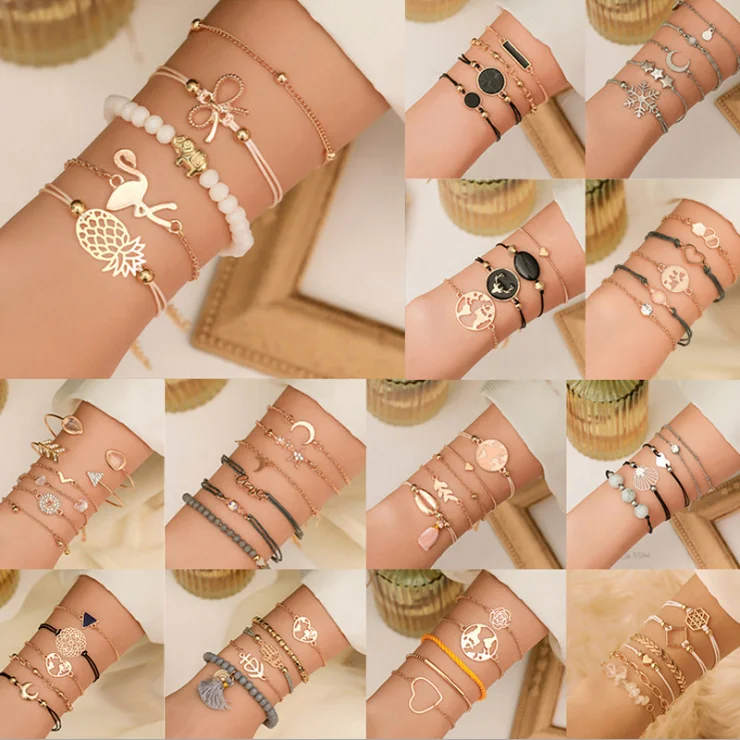 Product Name: s Gold Jewelry Sets Geometric Map Beaded High Quality Jewelry Shell Tassel Charm Bracelet Women