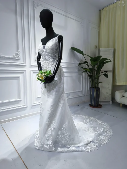 Product Name: S0176N Heavy Work Bead Shoulders Formal Luxury Evening Gowns with Shoulder Beads Wedding Dresses