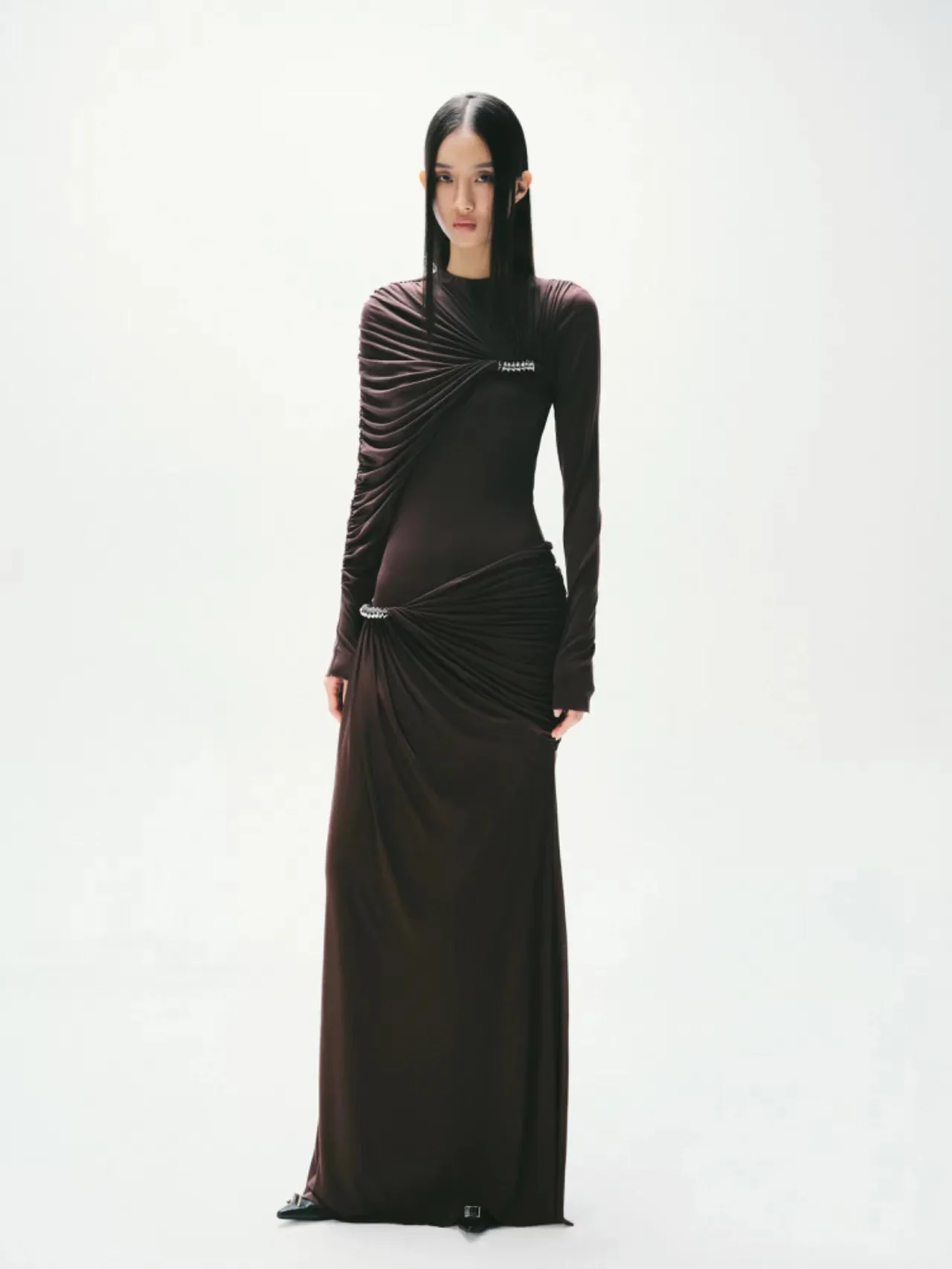 Product Name: Seven Color 2025 New Luxury Brand Elegant Evening Dress High Quality Round Neck Pleated High Waist Slim Long Women Dress