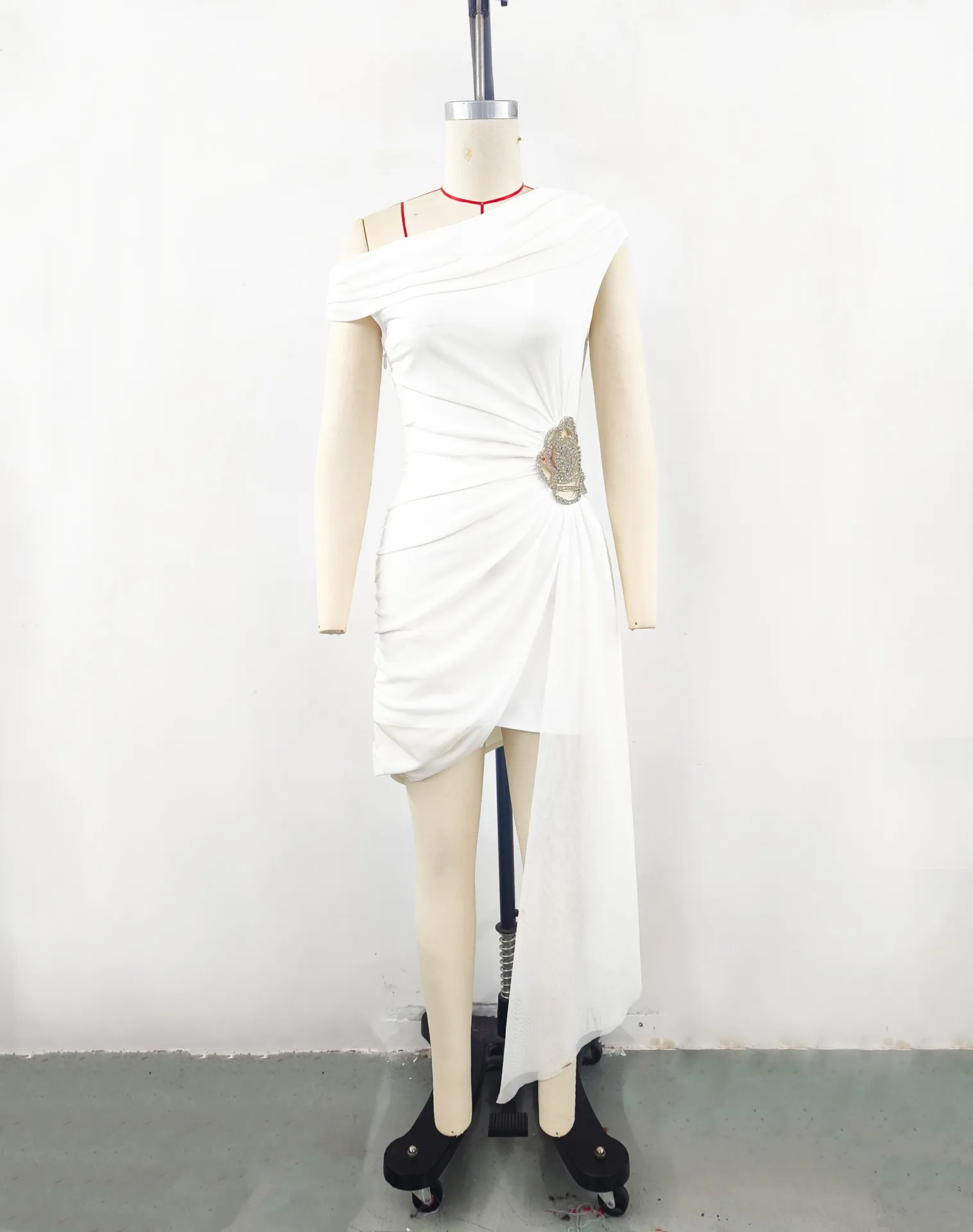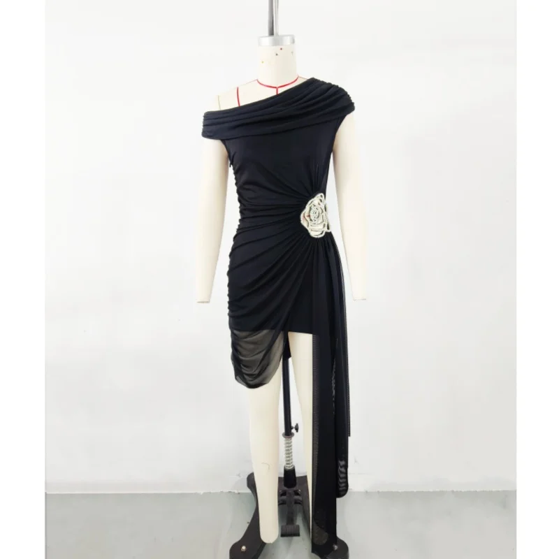 Product Name: Sexy Black One Shoulder Draped Bodycon Prom Bandage Dress Luxury Diamond Flower Celebrity Evening Runway Cocktail Party Dress