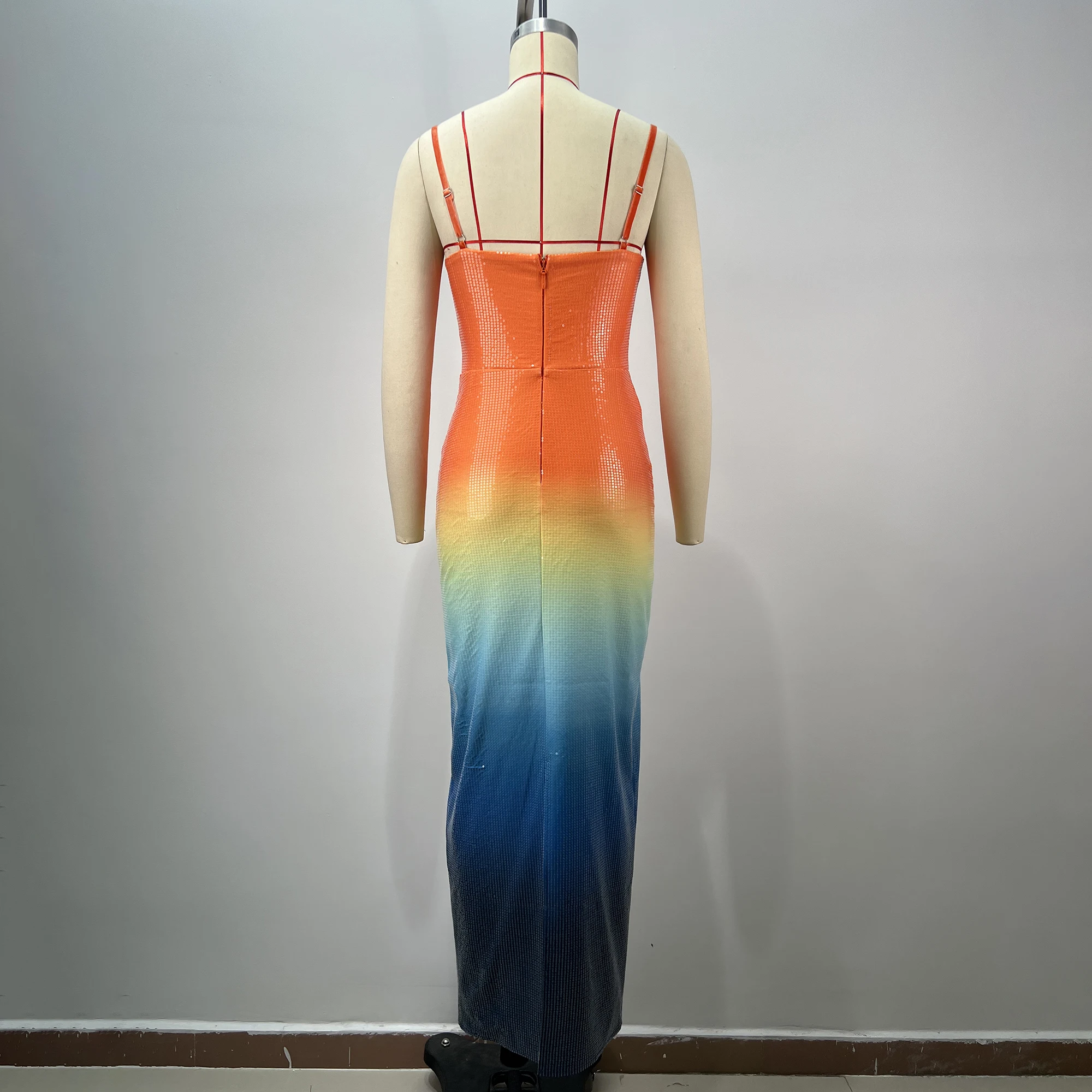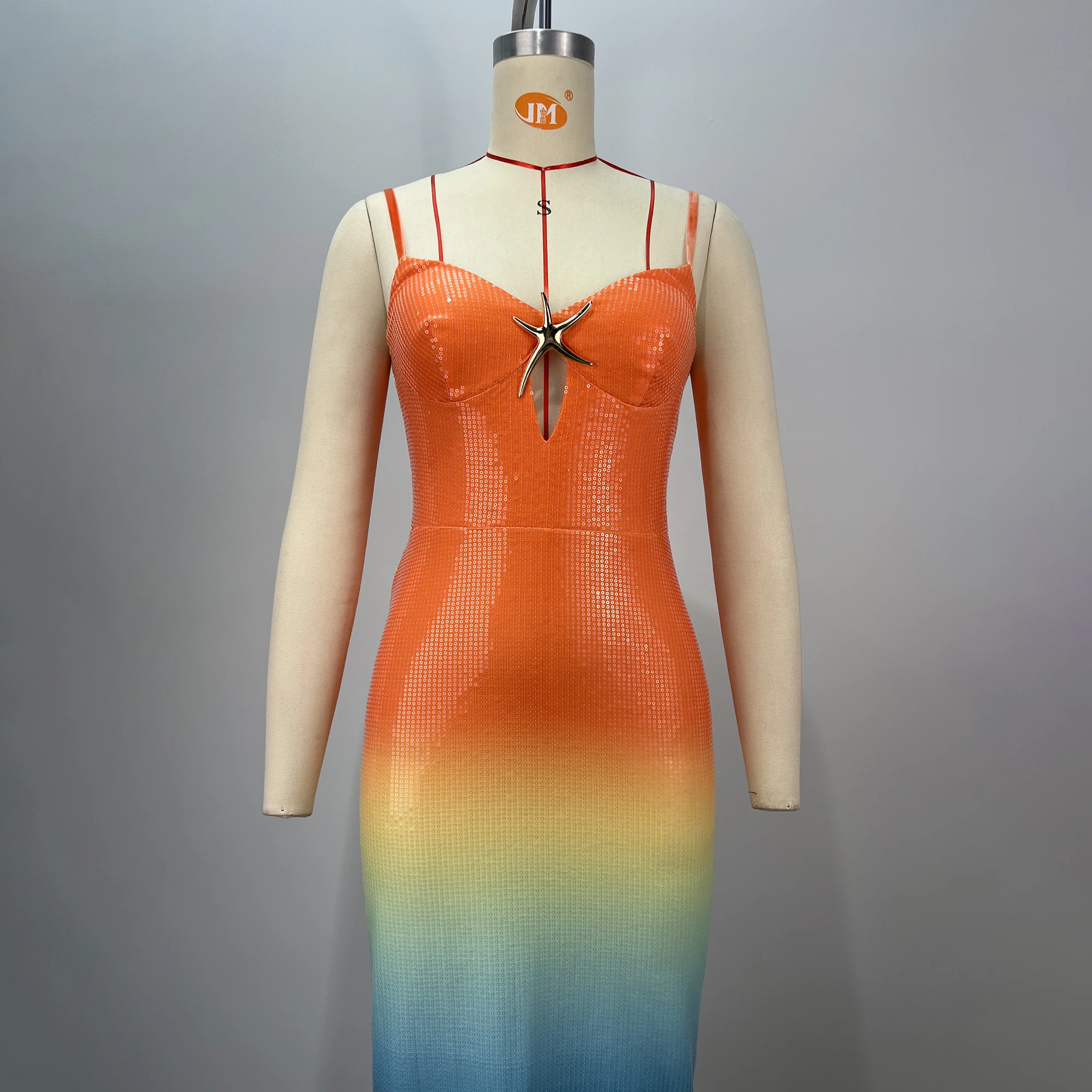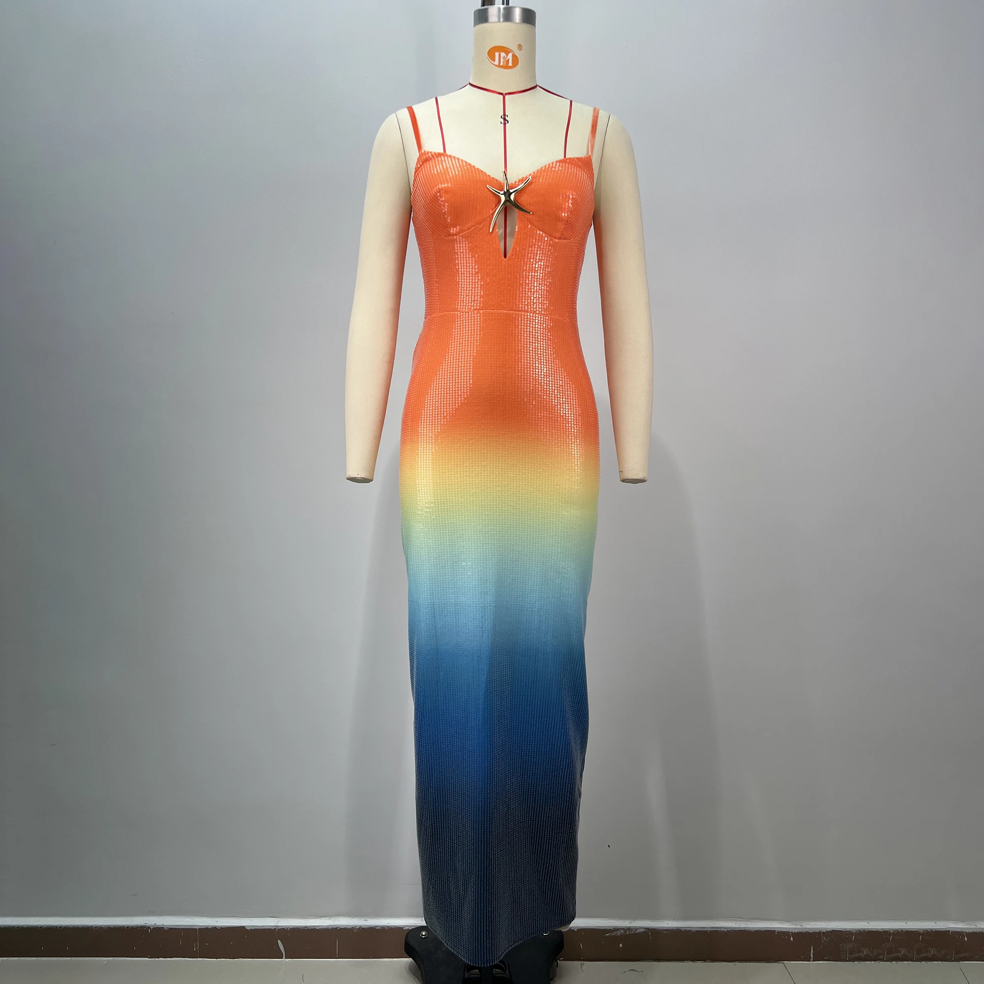 Product Name: Sexy Spaghetti Strap Gradient Sequin Starfish Long Dress Women Sleeveless Colorful Sequin Bodycon Dresses Party Holiday Sundress