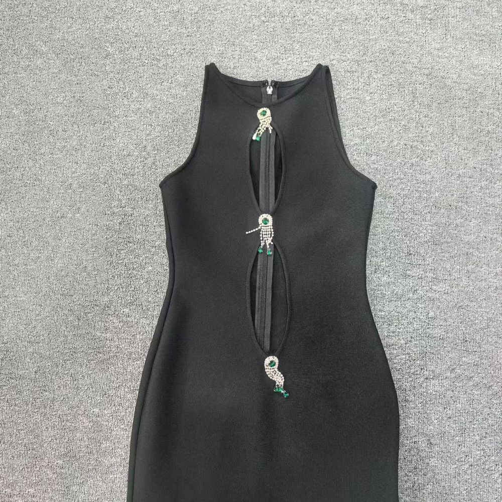 Product Name: Sexy Summer Hollow Out Crystal Tassel Sexy Maxi Dress for Women Black O Neck Sleeveless High Waist Bodycon Club Party Long Dress