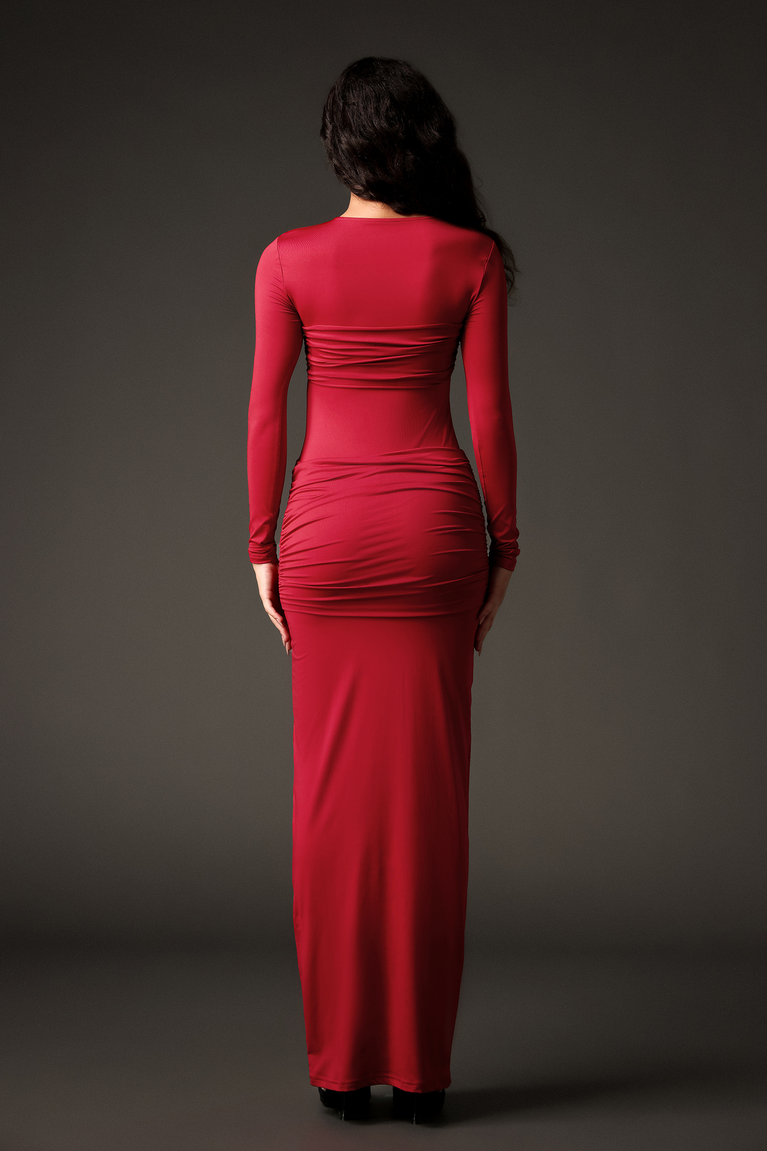Shardae Round Neck Long Sleeves Shirring Maxi Dress
