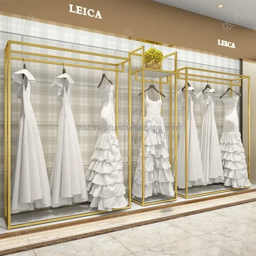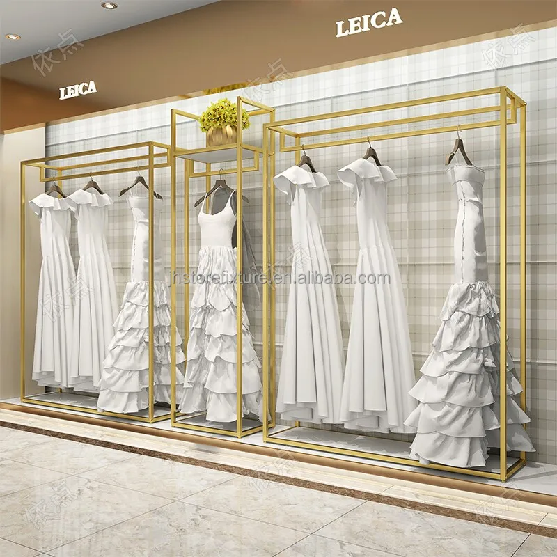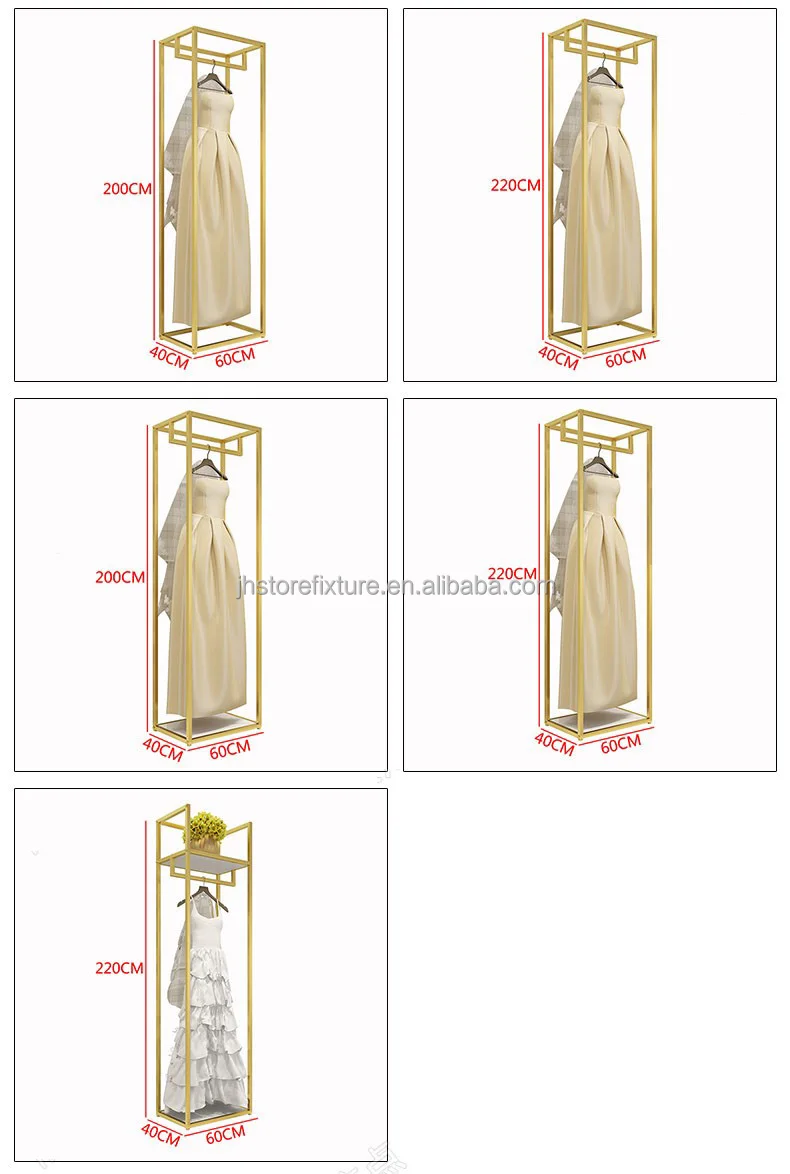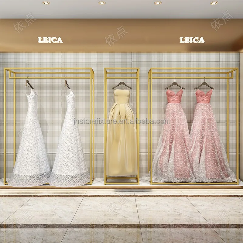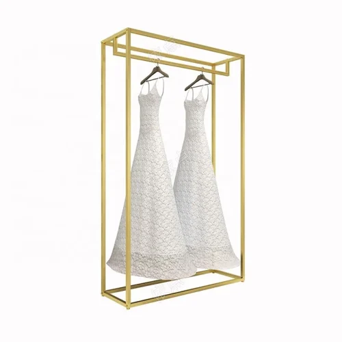 Shop Decorations Boutique Bridal Store High End Stainless Steel Gold Wedding Dress Clothing Rack Display Showcase