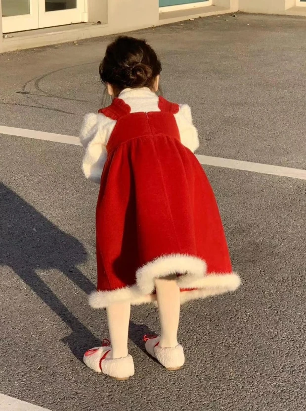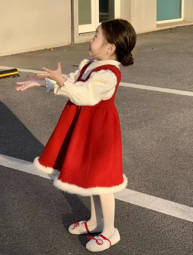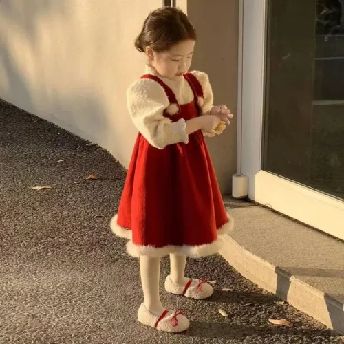 Shuoyang Children’s Clothing 2023 Autumn Winter New Christmas New Year Red Woolen Sundress Girl Baby Foreign Style Knit Sweater