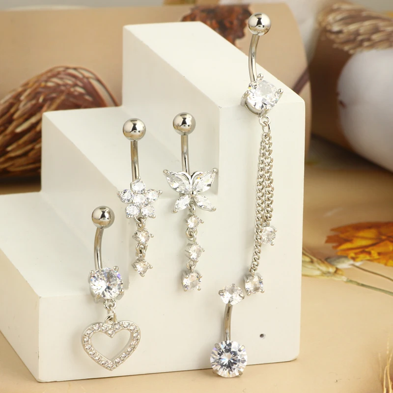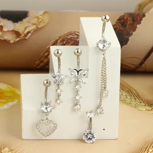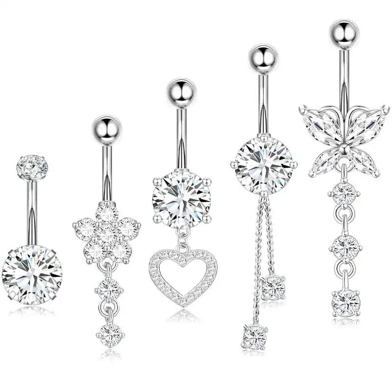 Product Name: Silver Gold Belly Button Rings Sexy Heart Dangling Navel Piercings Women Men Jewelry Barbell Kit Body Piercings
