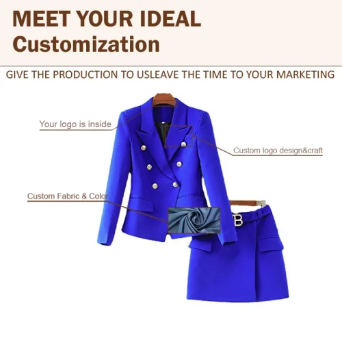 Spring Autumn New INS Internet Celebrity Deep Blue Suit Top with B-Button Half Body Skirt Commuter OL Two Piece Set One Set