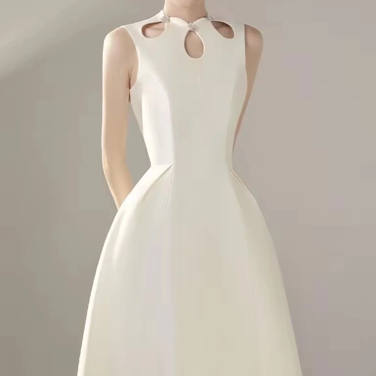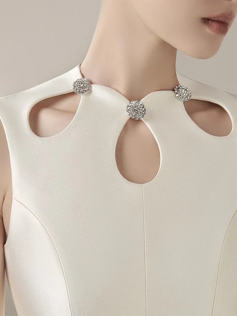 Product Name: Spring Summer 2024 New Arrivals High End Light Luxury Style Dress Women Hollow Out Diamond Sleeveless Temperament Dress