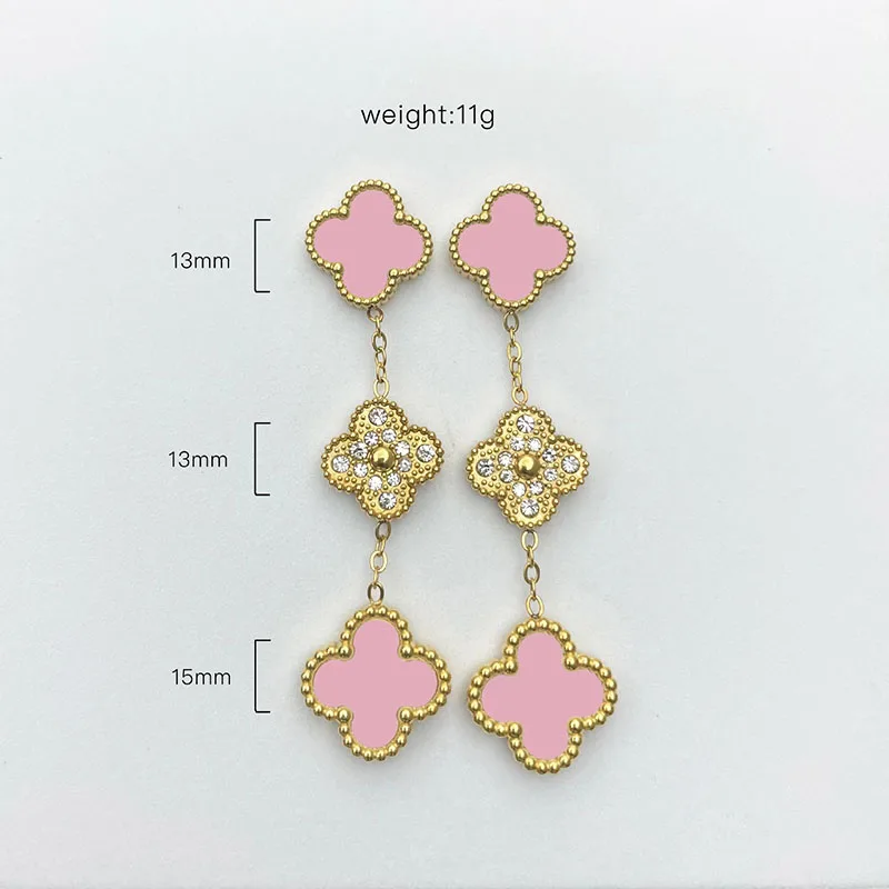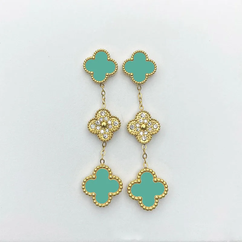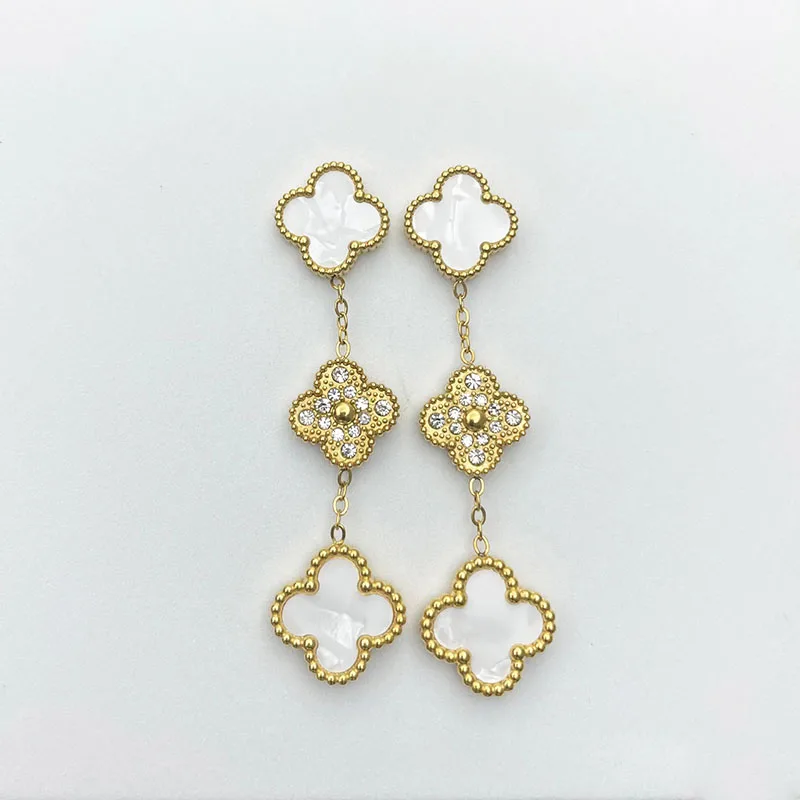 Stainless Steel European and American Popular Shell 18K Gold Women’s Jewelry Gift Long Clover Pendant Earrings