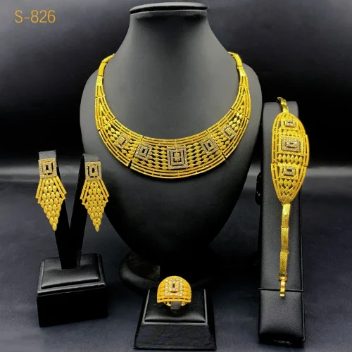 Statement Dubai 24k Gold Plated Indian Jewelry Set African Women’s Wedding Bridal Necklace Earrings Bracelet Ring