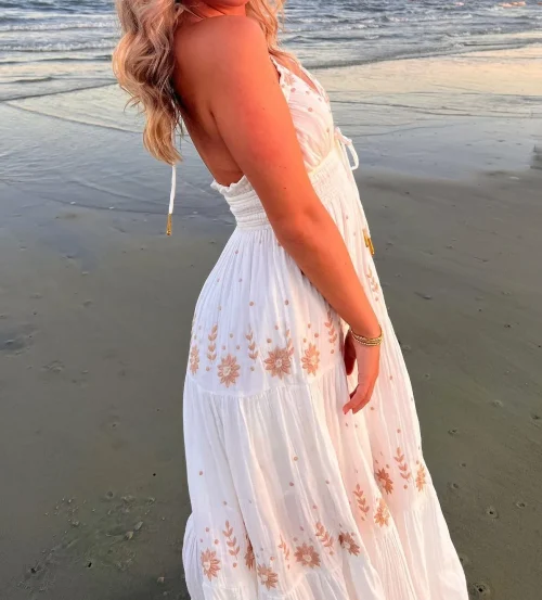 Stunning 2025 Halter Neck Sleeveless Sundress with Spaghetti Strap and Embroidered Linen a Boho Maxi Dress for Beach
