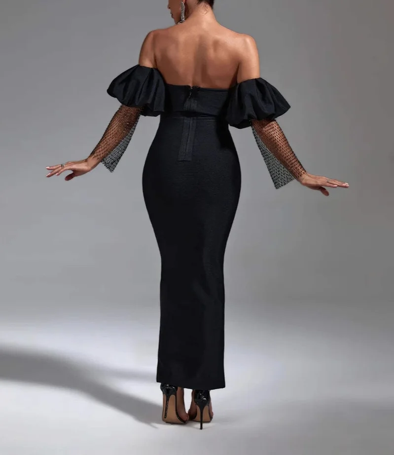 Product Name: Summer 2025 New Socialite Women’s Dress with Puffed Sleeves, Fashionable Slimming and Hip-wrapping Bandages
