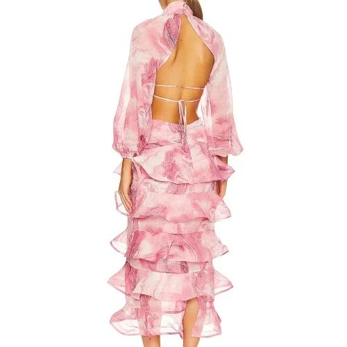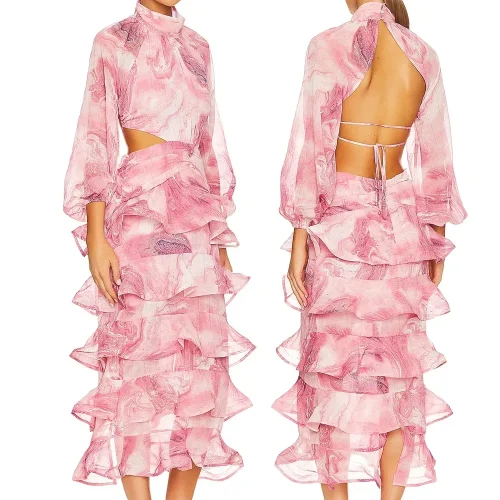 Product Name: Summer Elegant Floral Dress for Women Sexy Casual Style Ruffle Sleeve Chiffon O-Neck Women Sexy Evening Party Dress
